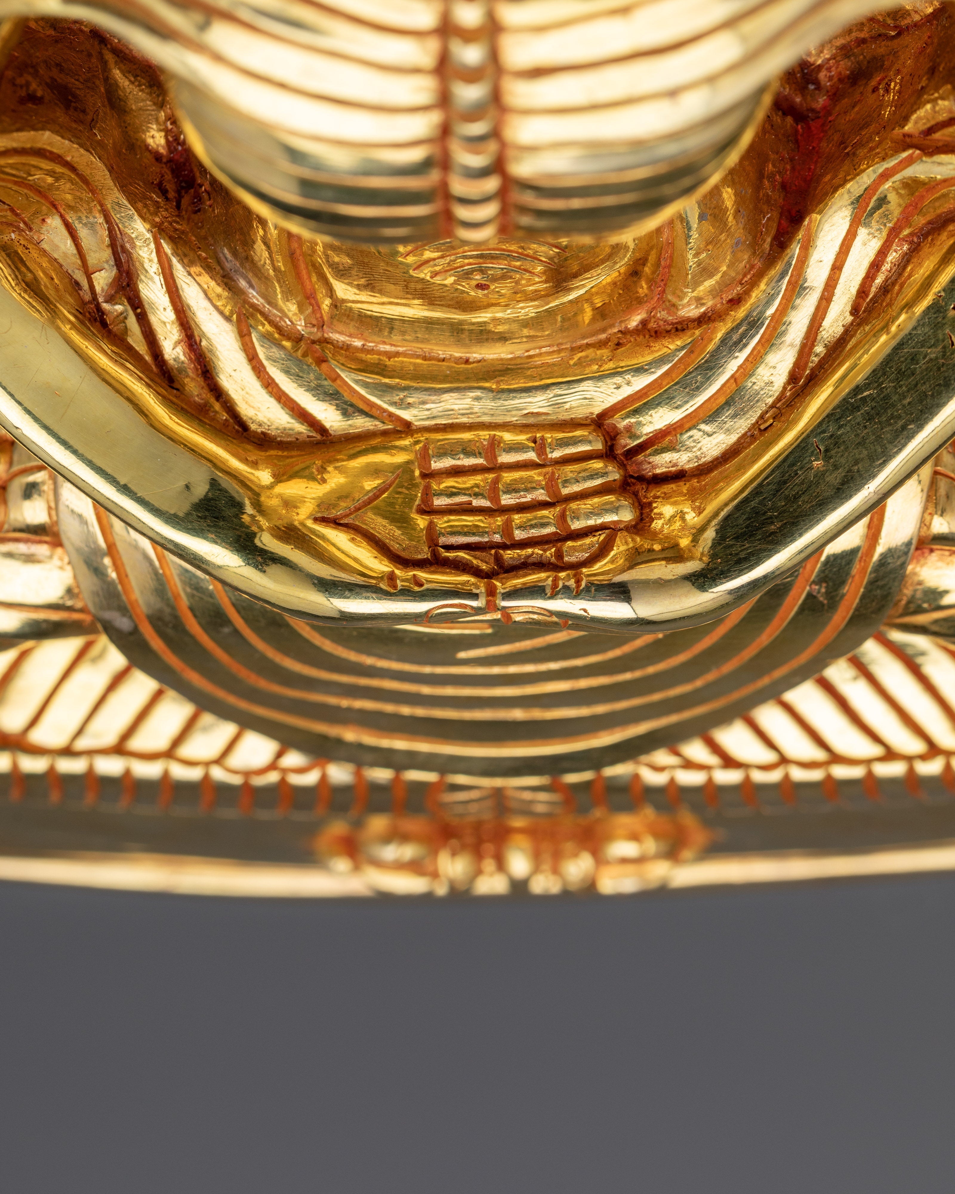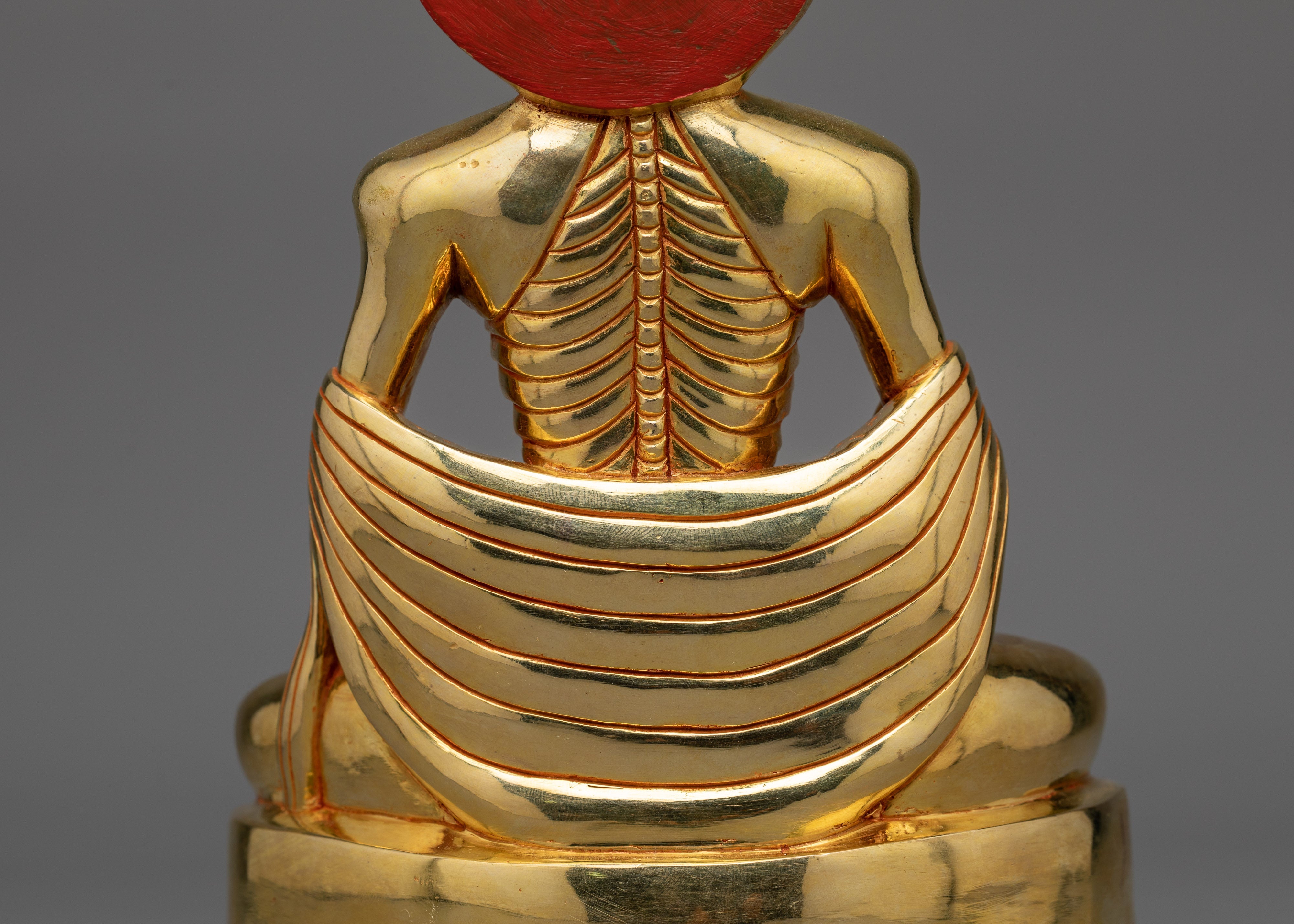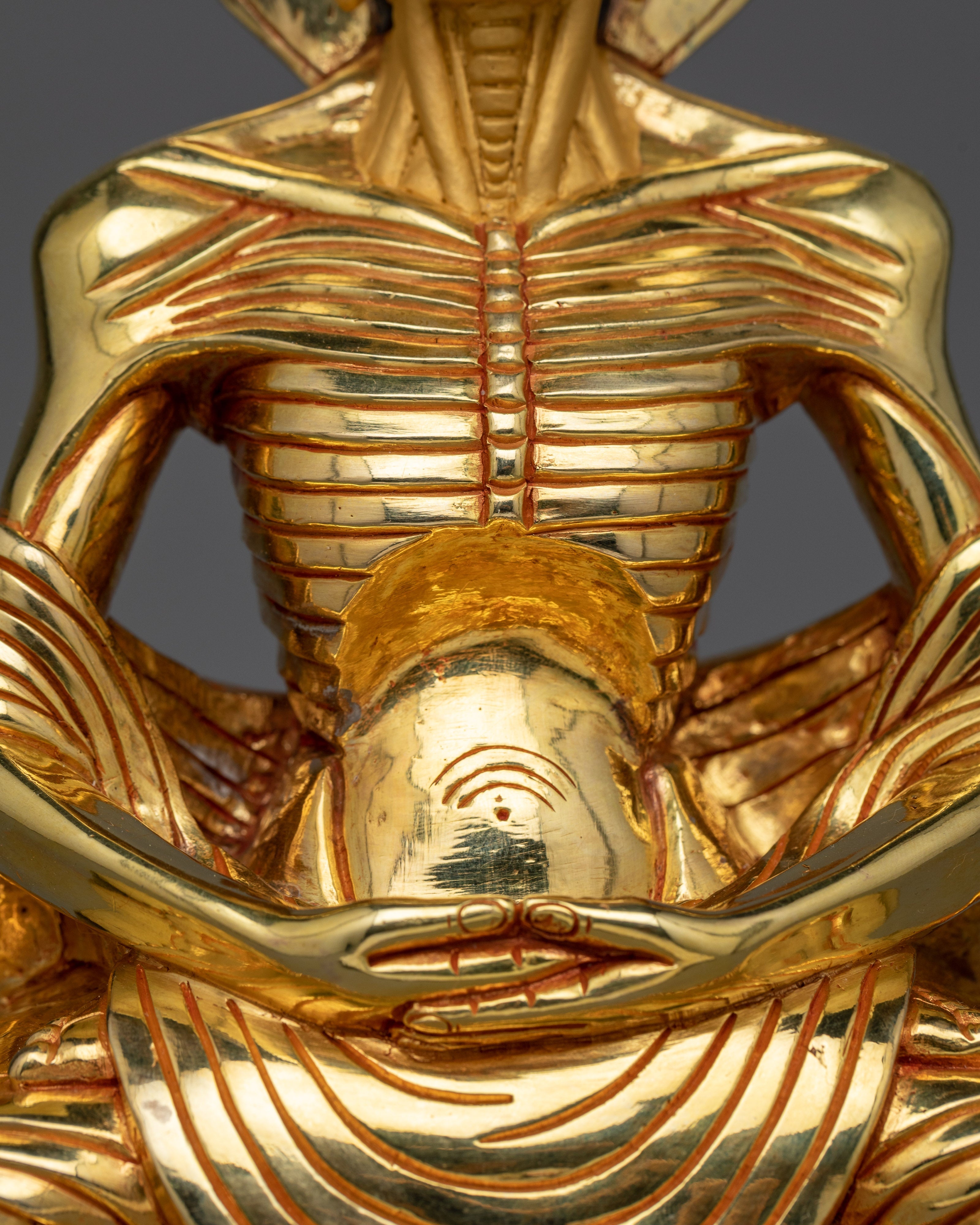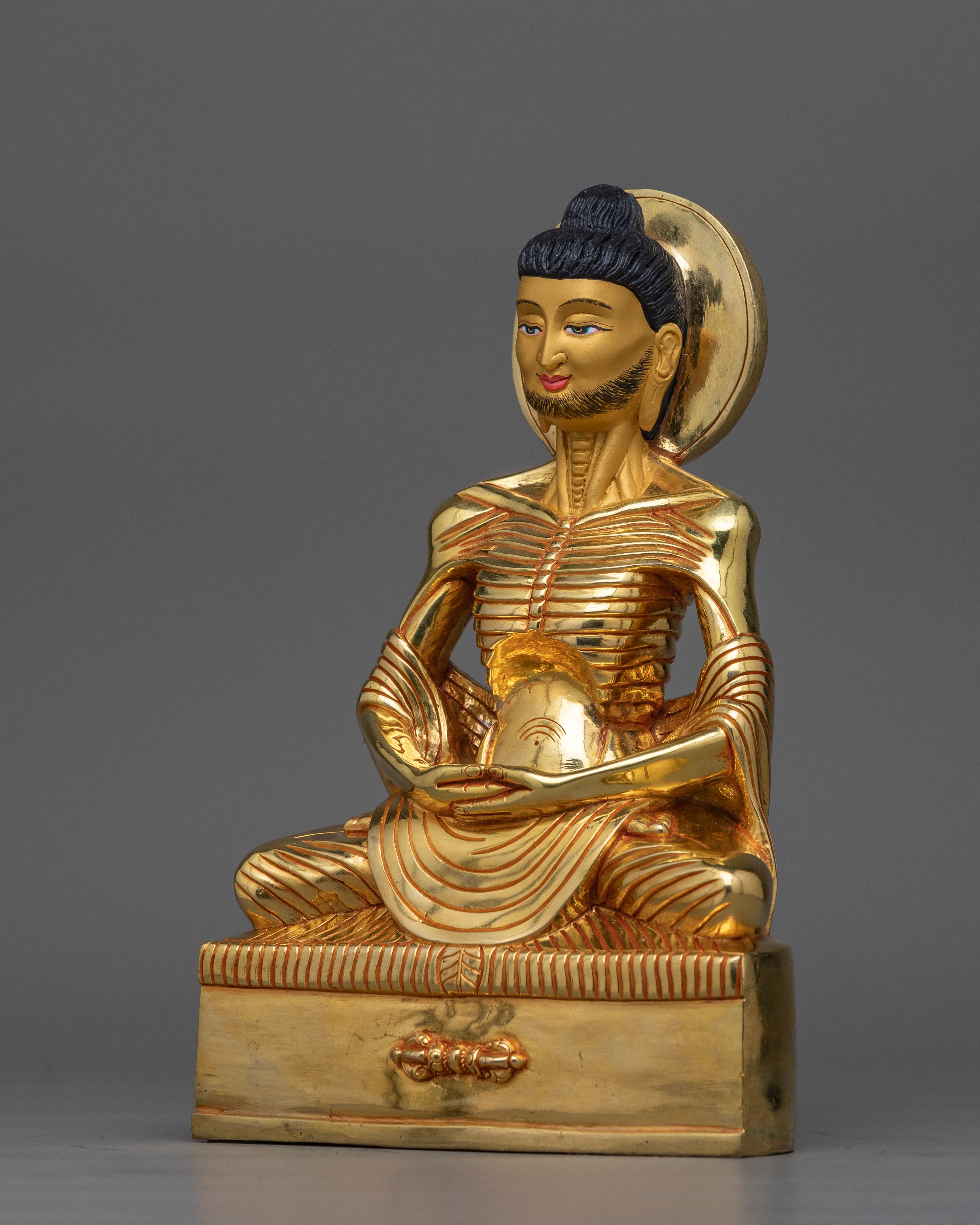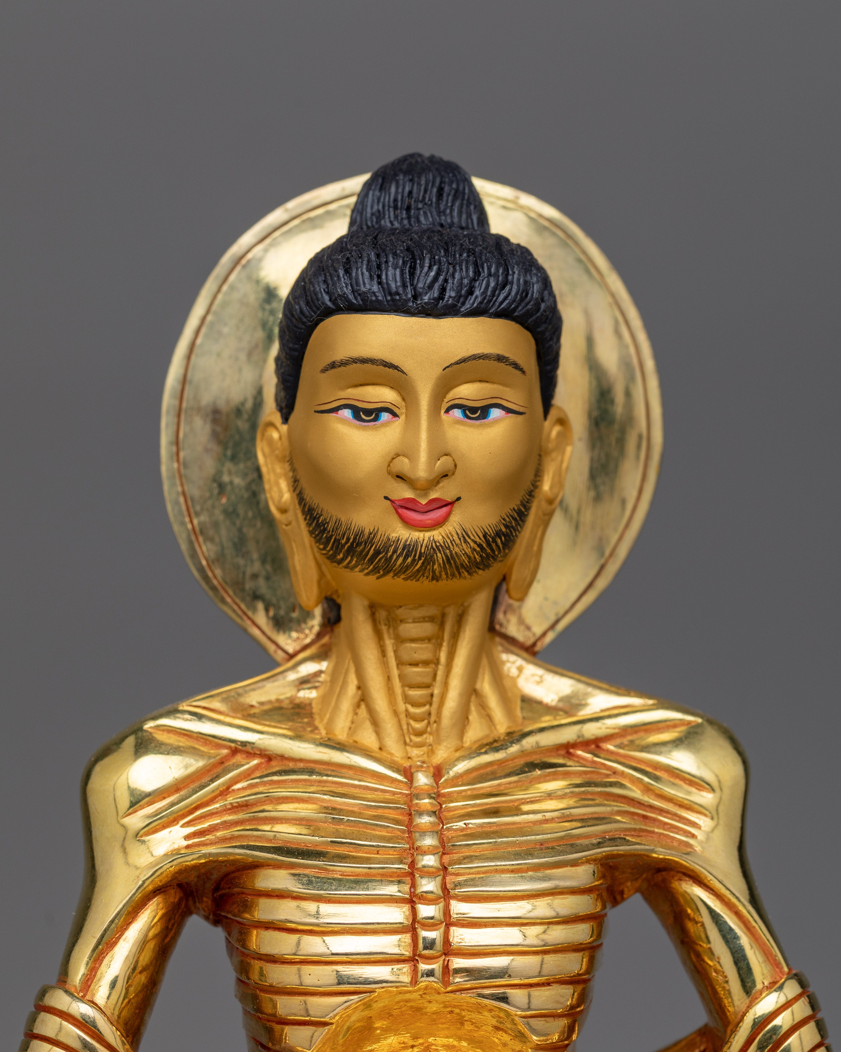 Weighing 2.05 kg, this artwork reflects the raw intensity of Buddha's spiritual search, with his ribs clearly delineated beneath his skin—a monument to his sacrifices for spiritual awakening. The gold gilding gives the statue a celestial light, contrasting with the austere portrayal and emphasizing the spiritual riches that transcends physical hardship.