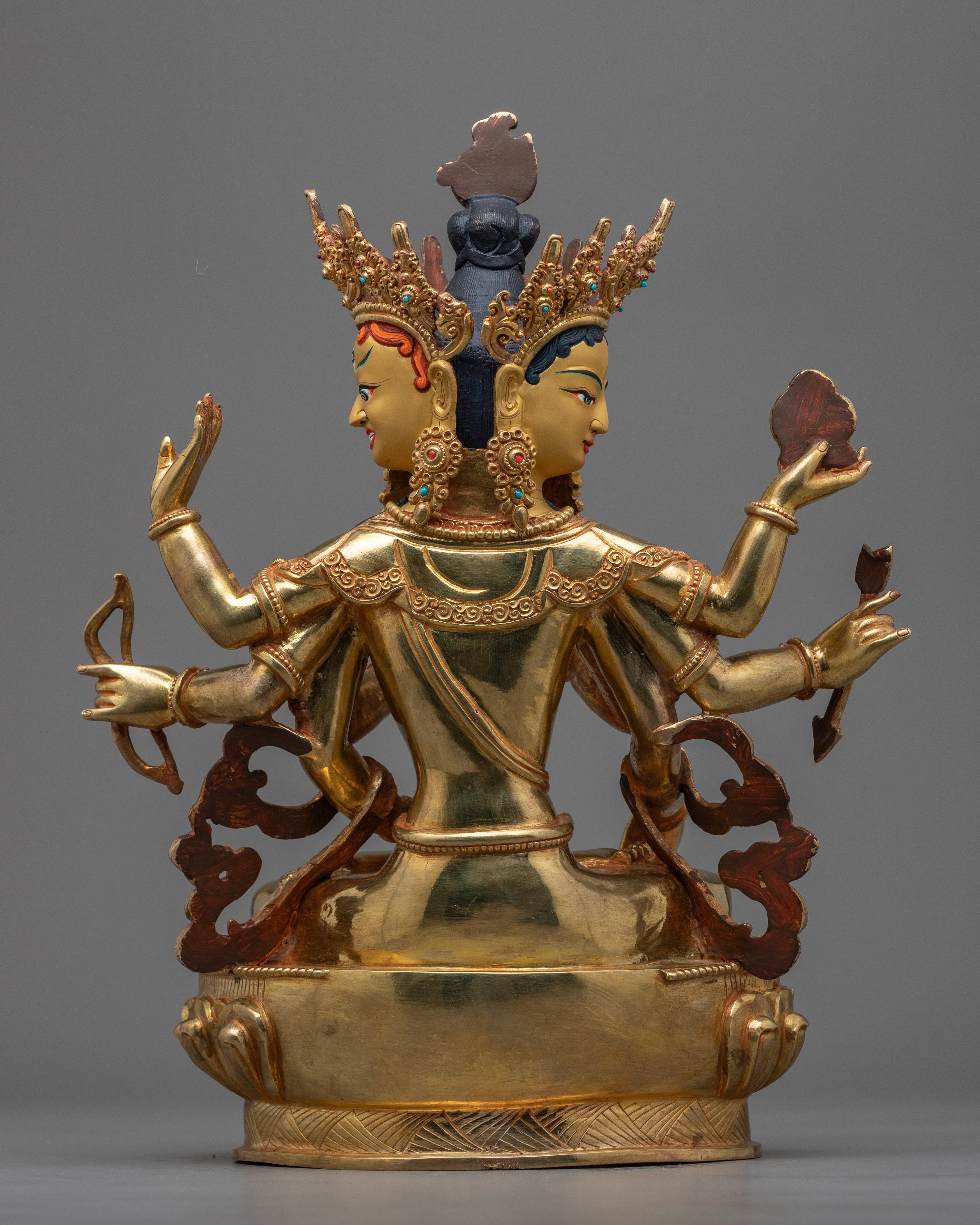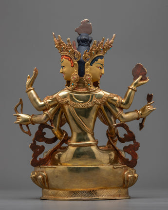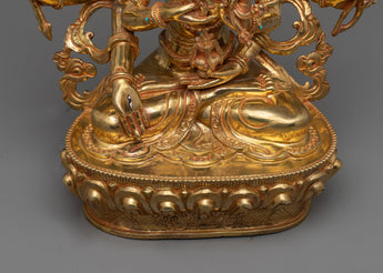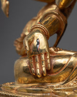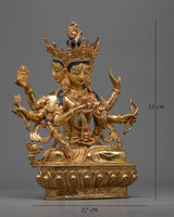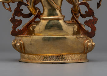 Experience the legacy of the 12.6-inch-tall Female Bodhi Namgyalma Statue, which has a 10.6-inch base. With its elaborate 24K gold plating and copper structure, this statue exudes transcendence and spiritual profundity. Delicately applied by expert artisans, the elaborate paintings made of acrylic, and gold encapsulate the heavenly spirit of Namgyalma. The deep lessons and blessings connected to her presence are reflected in every little detail, such as the carefully carved patterns on her robes and the contented expression on her face.