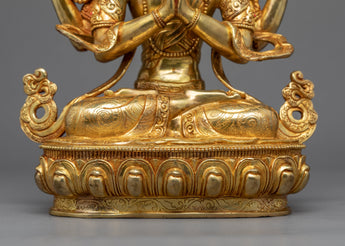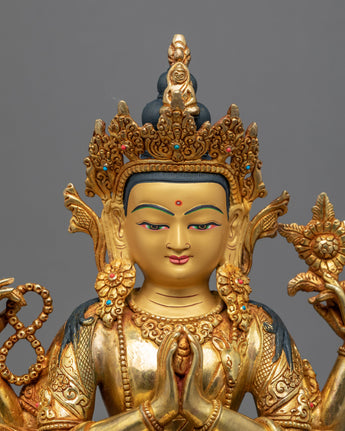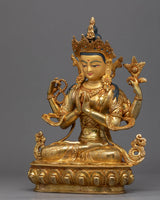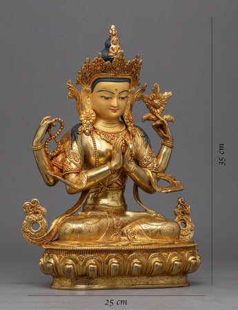 Four Armed Chenrezig Gold Sculpture | Boddhisattva of Compassion