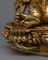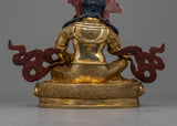 The complex designs on his base are enhanced by the lovely gold gilding and vivid gemstones. These features lend depth and brilliance to the statue, increasing its visual appeal and spiritual importance. This statue is perfect for personal altars, meditation rooms, or as a thoughtful gift. It combines visual beauty with profound spiritual value.