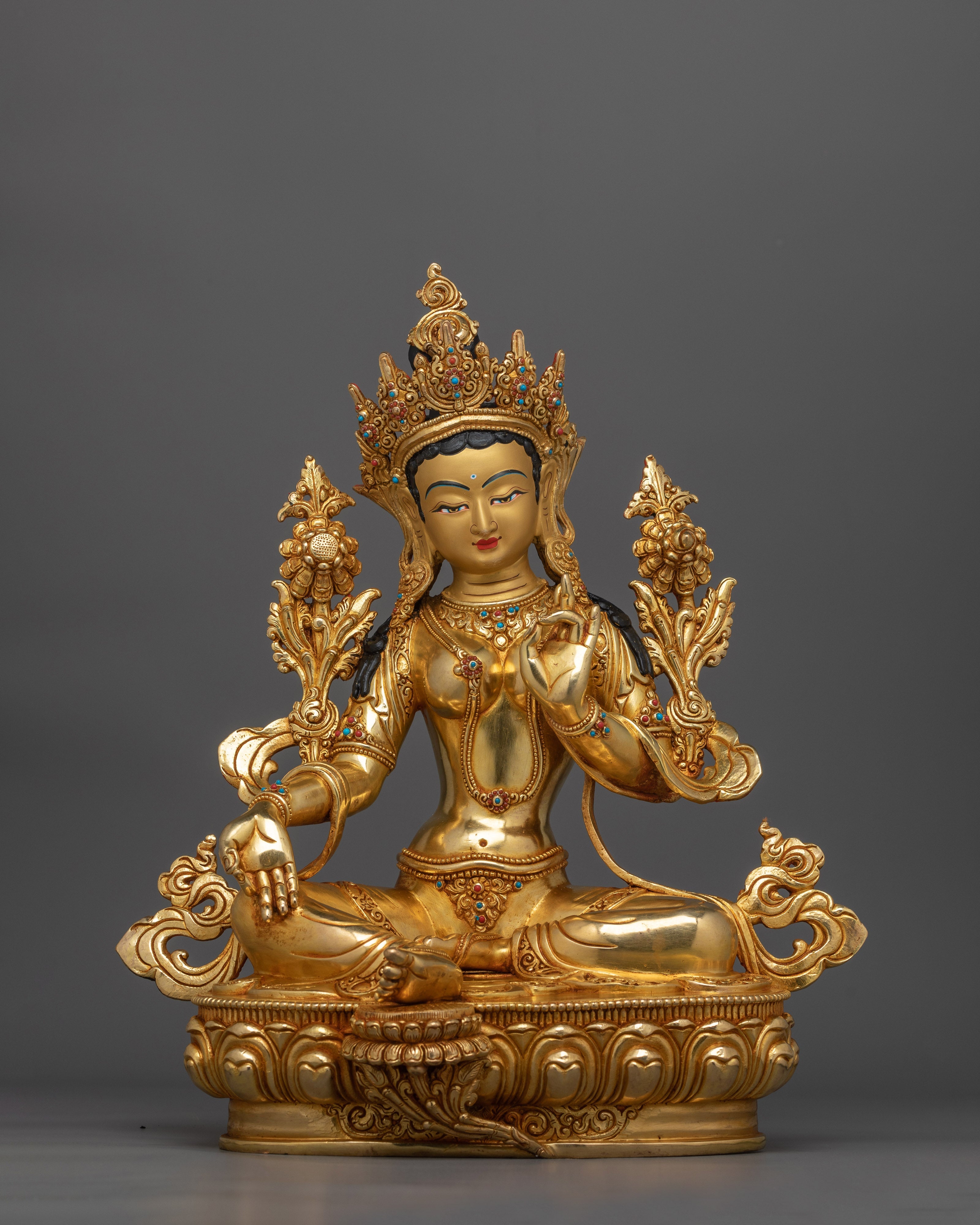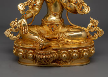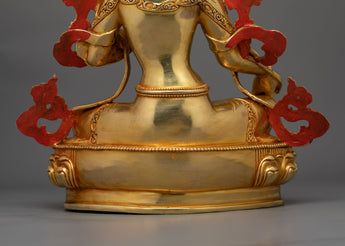 Graceful Green Tara Gold Gilded Statue | Symbol of fine Handcrafted Buddhist Artwork