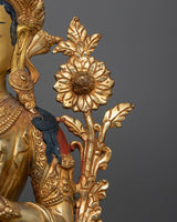 Green Tara Gold Gilded Oxidized Statue | Handcrafted Symbol of Compassion