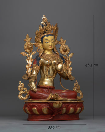 Transform Your Sacred Space with the Green Tara Gold Gilded Oxidized Statue