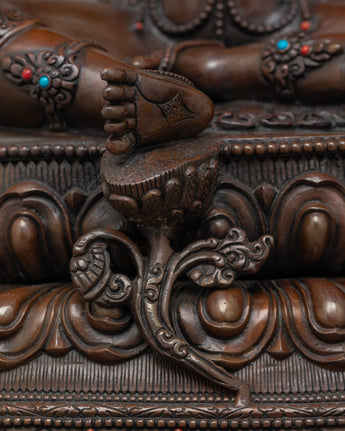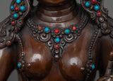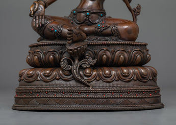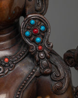 In addition to giving the statue more depth, the use of oxidized copper represents the god's eternal character. The sensitive and calm portrayal of Green Tara is a testament to the skilled artistry. This statue is a great addition to homes, meditation areas, or altars for anybody wishing to infuse their surroundings with a sign of protection and compassion.