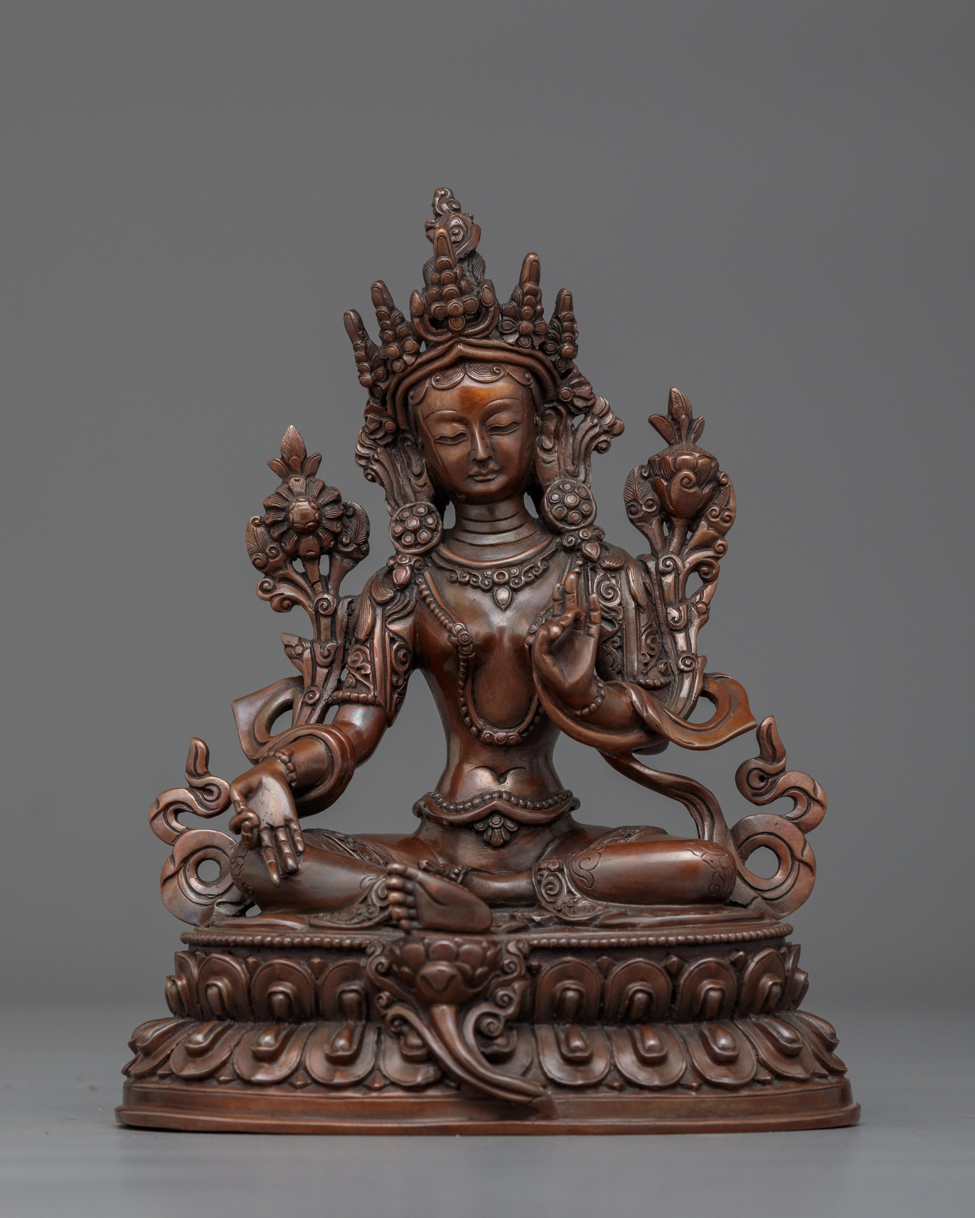 Embrace the Divine Grace of Our Green Tara Handmade Small Oxidized Statue