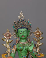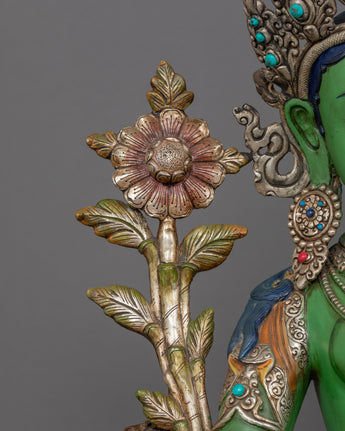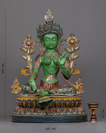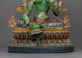 This indoor Green Tara Tibetan statue may be utilized for various purposes, such as daily yoga or meditation, Buddhist rites, or even interior design.