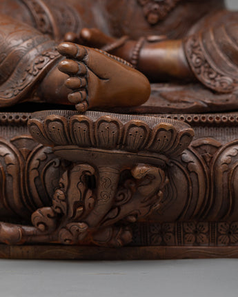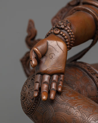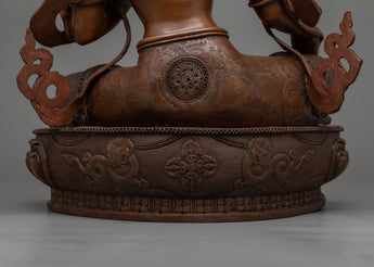 The Green Tara Oxidized Statue is an enduring representation of knowledge and kindness that can help you discover divine protection and compassion. This beautiful statue, which stands at an elegant height of 15.7 inches, has a calm and compassionate aura that comforts and guides searchers on their spiritual path. This carefully handcrafted Green Tara statue is made of oxidized copper and reflects the spiritual potency and ancient knowledge of Buddhism.Â