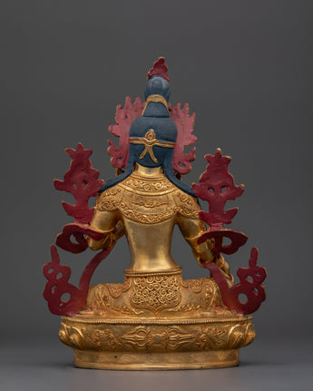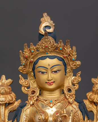 Handcrafted 24K Gold Gilded Green Tara Sacred Sculpture for Spiritual Blessings