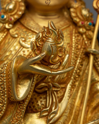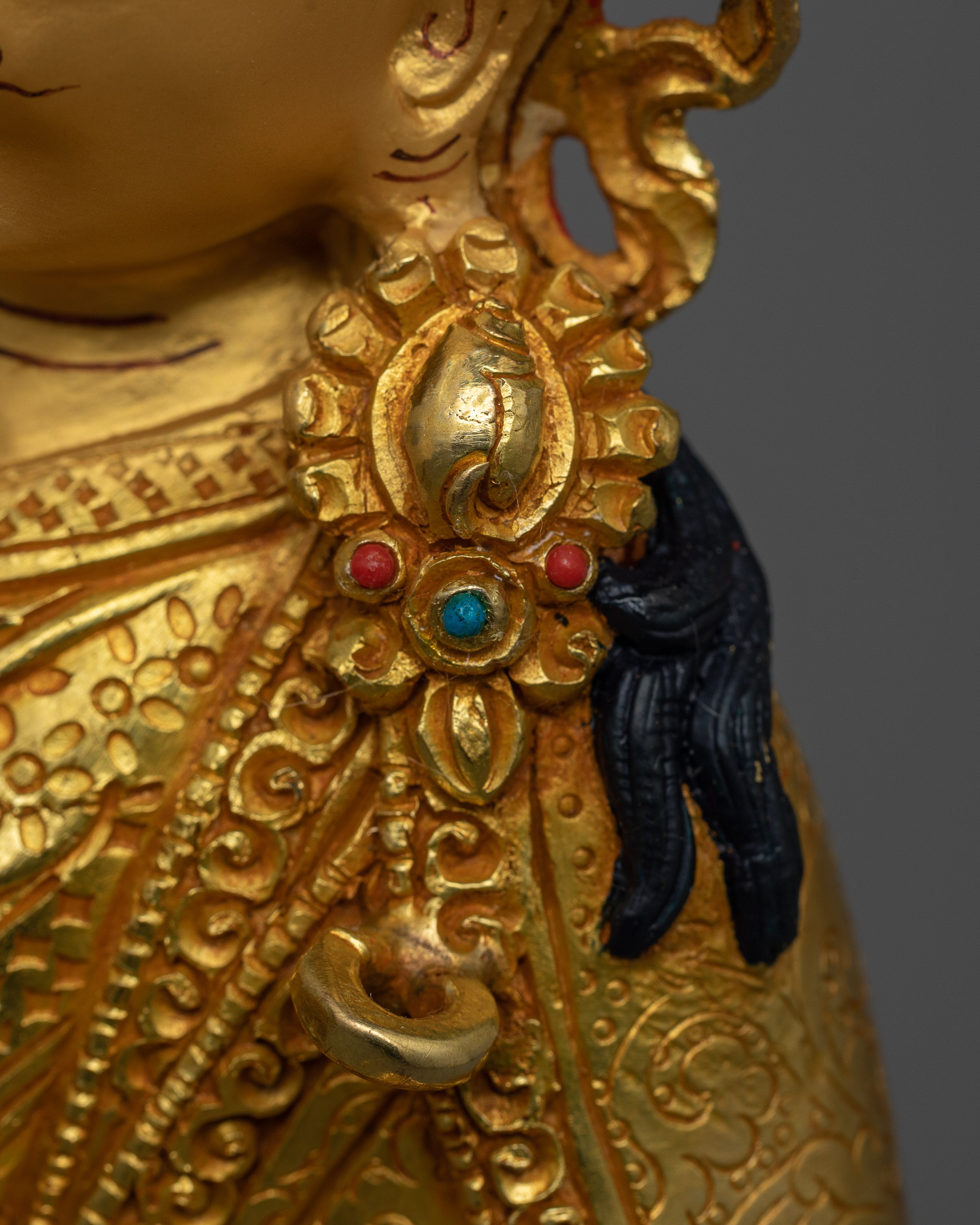 The Guru Abundance Norla Statue invites you to a realm of abundance and spiritual richness. Capturing the essence of Guru Norla's blessings, this lovely statue stands at 9.3 inches tall and weighs 2.03 kg. It radiates elegance and grace. With its elaborate gold and acrylic paints and fine construction made from the finest materials—including 24K gold gilded copper—it radiates a sense of heavenly riches. Connect with the spiritual presence of Guru Norla and accept abundance into your life by invoking his blessings. whether it is placed in your home or another hallowed place.
