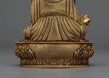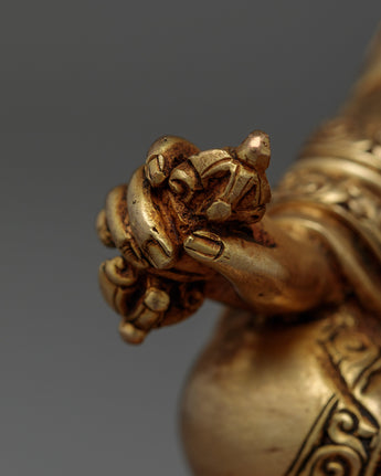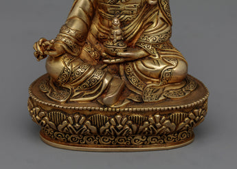 Introduce our Guru Rinpoche an Antique Touch Small Statue that was carefully crafted in Patan, Nepal. Handcrafted from fine copper and adorned with 24K gold, this lovely object perfectly captures the rich legacy of Nepalese metalworking. Guru Rinpoche is portrayed in a calm yet commanding pose, signifying his function in advancing Buddhism and providing spiritual defense. He is the embodiment of wisdom and protection. The statue's fine craftsmanship and antique polish highlight our artists' extraordinary talent and give it a timeless spiritual depth.