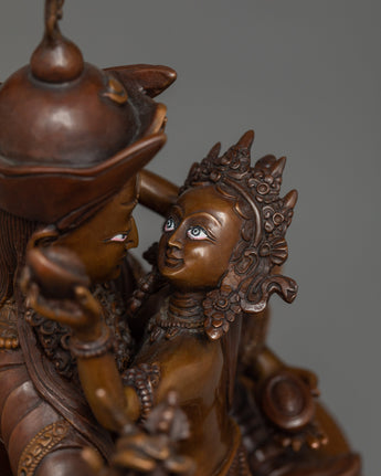 Guru Rinpoche With Consort Oxidized Copper Statue | Traditionally Hand-crafted in Nepal