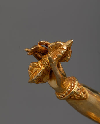 The Vajrapani figurine for the shrine is a potent symbol of spiritual strength and perseverance in Buddhist art. This exquisitely carved statue is ideal for anyone seeking to connect with Vajrapani's dynamic energy and protective abilities. It is ideal for meditation or as part of religious decor, and it is a valuable addition to anyone seeking spiritual strength and determination in their practice or home.