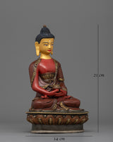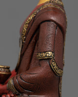 The Amitabha Sukhavati Statue is 8.3 inches tall and is wonderfully fashioned from oxidized copper with dazzling 24K gold plating. This statue, embellished with intricate gold and acrylic paints, reflects the serene presence of Amitabha, the Buddha of Infinite Light. This petite yet wonderfully carved statue, which stands on a 5.5-inch base and weighs 1.10 kg, is suitable for personal altars or meditation areas, providing as a powerful reminder of Amitabha's Pure Land of Sukhavati and the road to enlightenment.