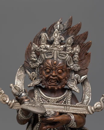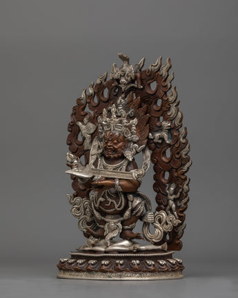 Hand-Carved Protector Deity Sakya Mahakala Statue | Sacred Mahakala