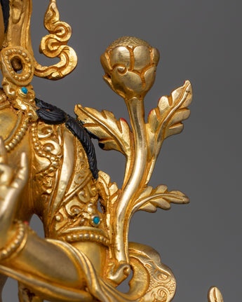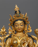 Hand-Carved Serene Nature Green Tara Statue | 24K Gold Gilded Tibetan Sculpture
