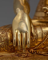 Hand-Carved Shakyamuni Buddha Enlightened Figure | 24K Gold Gilded Tibetan Sculpture