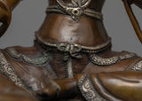 Green Tara, revered as the Swift Liberator and embodiment of compassionate action, is a central figure in Tibetan Buddhism. She is known for her quick response to the prayers of those in distress, offering protection and guidance. This statue captures Green Tara's dynamic and nurturing essence, with her right leg extended in a readiness posture to spring into action to help those in need. She is sitting on Lotus. Her right hand is in granting mudra with a lotus stem gripped with her finger, and her left hand is also holding a lotus stem.