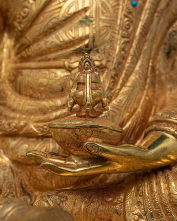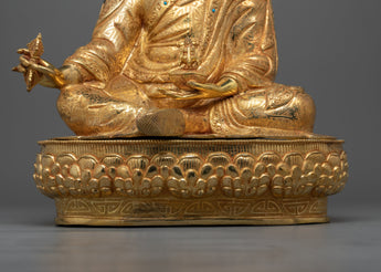Handcrafted Guru Rinpoche Statue is celebrated for his role in spreading Buddhism and subduing negative forces. His serene expression and dignified posture convey spiritual power and enlightenment. Imagine the transformative energy this Handcrafted Guru Rinpoche Statue could bring to your sacred space.
