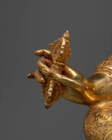 Gold and acrylic paintings highlight the delicate intricacies and symbolic significance of Guru Rinpoche's dress, demonstrating the superb workmanship of Nepalese artisans. This wonderful Handcrafted Guru Rinpoche Statue will enhance your environment and increase your spiritual practice. Allow its beauty and symbolism to instill a greater sense of devotion, wisdom, and spiritual connection in your home, resulting in a sanctuary brimming with divine elegance and sacred energy.