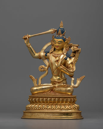 Handcrafted Manjushri Sculpture for Altar | Bodhisattva of Enlightened Wisdom