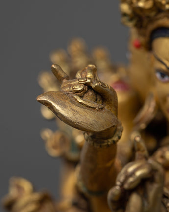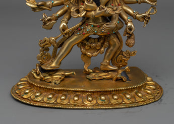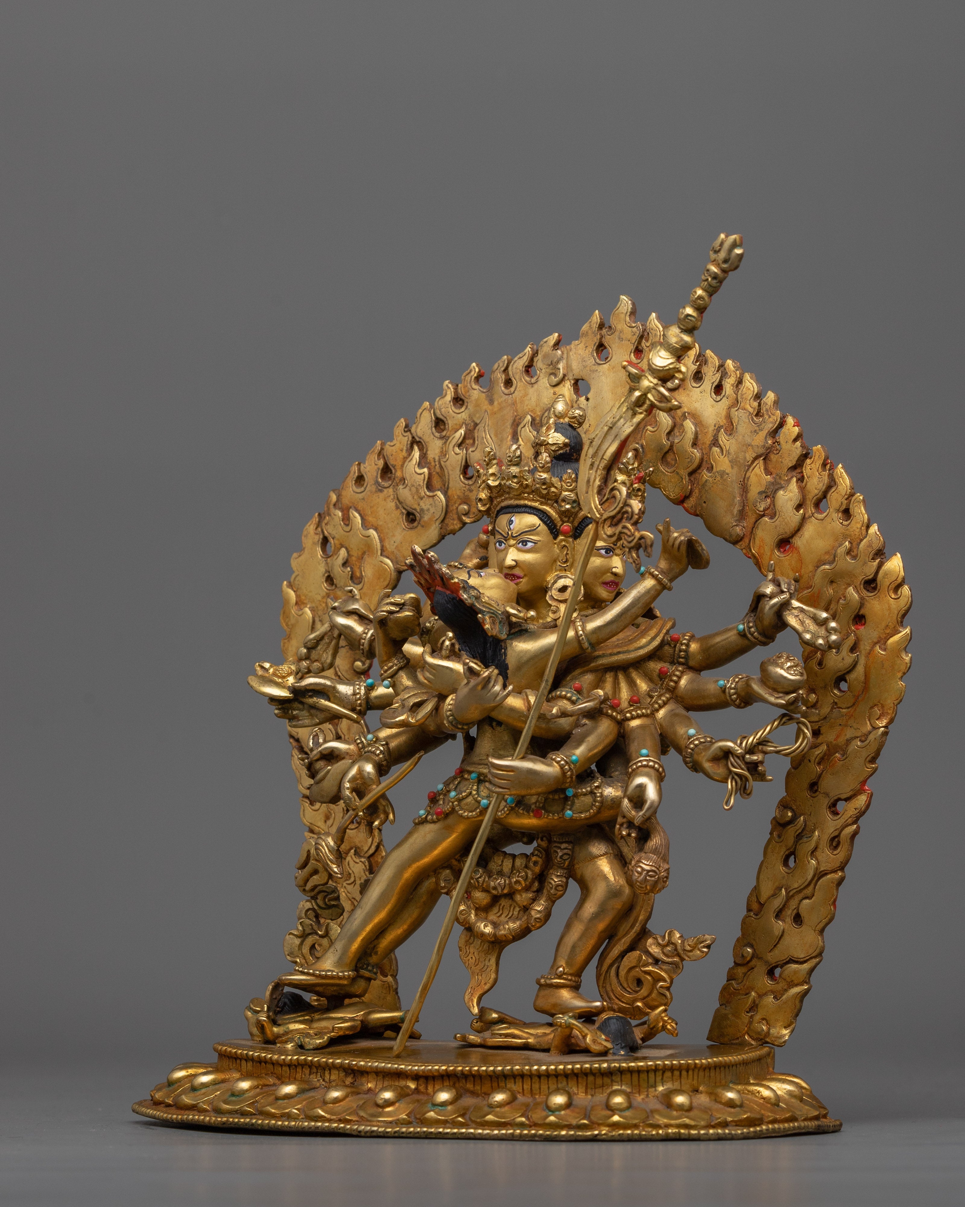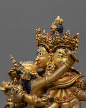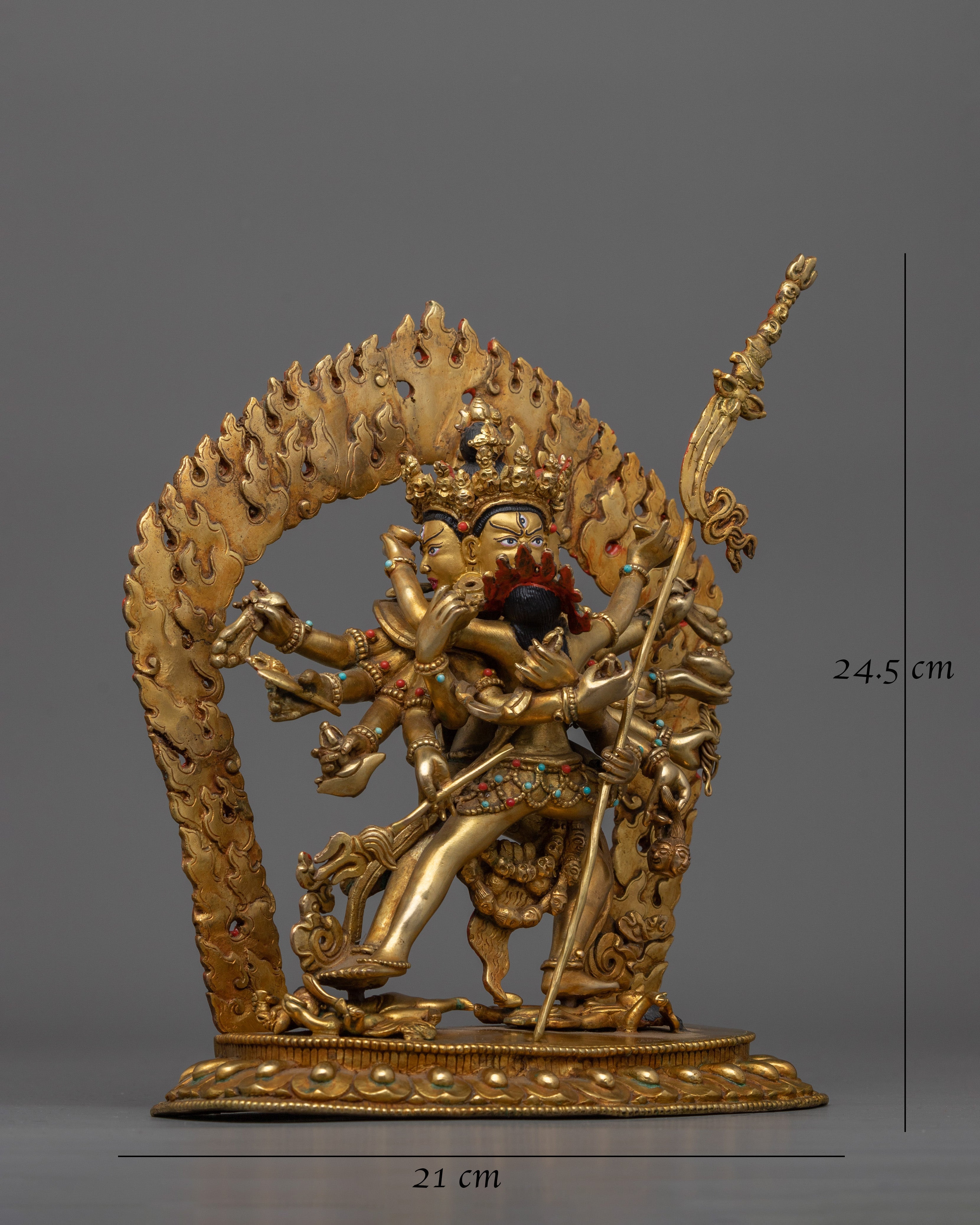 Handcrafted Tibetan Buddhist Chakrasambhara Sculpture for Protection | 24K Gold Gilded Art