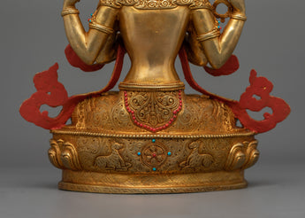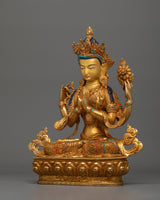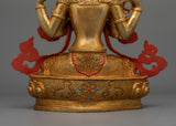 Handmade Chenrezig Serene Deity | 24K Gold Gilded Copper Statue