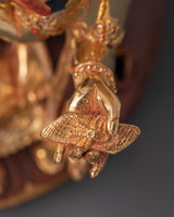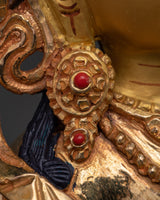 This exquisite Goddess Maa Saraswati statue, handmade from copper and embellished with 24K gold plating, embodies heavenly wisdom and creativity. Intricate features, accented by rich gold and acrylic paints, bring the statue to life, while the soothing glow of the gilded surface exudes grace and elegance.