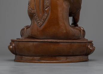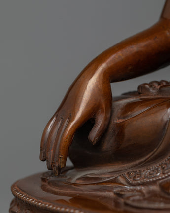 Our sculpture, Handmade Shakyamuni Buddha Figurine for The Shrine of Gautam Buddha, is crafted from an oxidized copper body with gold and acrylic painting, showcasing the timeless elegance of traditional Himalayan workmanship. This artistry, passed down through generations of Nepali artisans, reflects a deep cultural heritage. Each detail is meticulously carved, embodying a serene presence that enhances any spiritual space, offering a connection to peace and mindfulness.