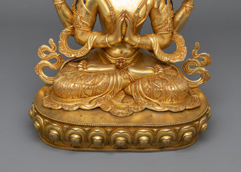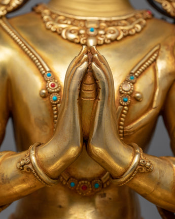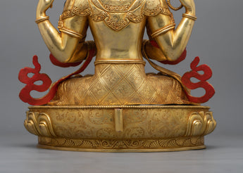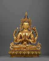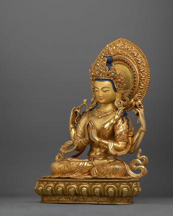 Handmade Tibetan Avalokiteshvara Chenrezig Statue | 24K Gold Gilded with Copper Body