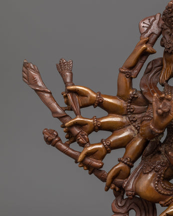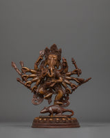 Lord Ganesh is worshipped as the god of beginnings, wisdom, and success. This statue is depicted with his elephant head, which represents wisdom and insight. The Oxidized Copper Body offers it a vintage appearance that enhances its spiritual presence while remaining ageless. The Hindu God Ganesh, is renowned for removing barriers, bestows upon his followers blessings for prosperity and wisdom. In order to overcome obstacles and find inner peace and prosperity in their life, devotees look to him for advice.