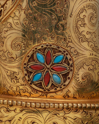 Material: 24K Gold Gilded, Gold & Acrylic Paintings, Hand Carved Gemstone, Copper Body