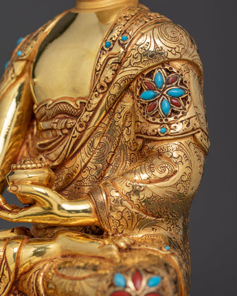 Historical Shakyamuni Buddha Figurine | 24K Gold Gilded Sculpture