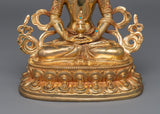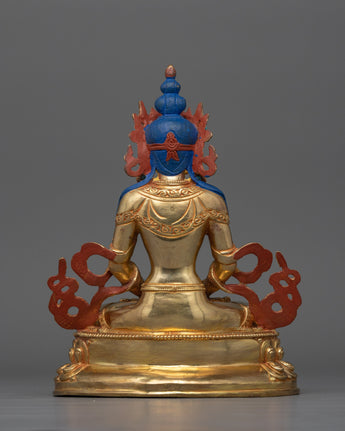 Infinite Life Amitayus Hayagriva is made of copper, beautifully gilded in 24K gold, and embellished with acrylic and gold paintings. From Amitayus' serene face to Hayagriva's dramatic features is an addition to your altar or meditation area because it is small yet full of spiritual meaning.