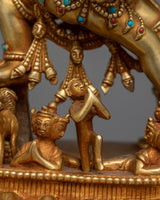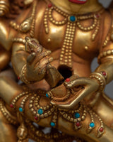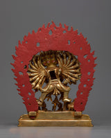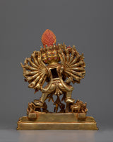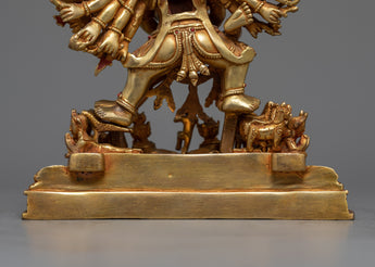 This copper figurine has layers of gold gilding to highlight its delicate features and give it a brilliant, long-lasting finish. The vivid details added by the acrylic and gold paintings bring the formidable figure of Yamantaka and his spouse to life. Imagine placing this powerful figurine in your meditation space or sacred altar, where its presence can inspire a deeper connection to your spiritual practice. Yamantaka's dynamic energy, combined with his consort's serene balance, serves as a potent reminder of the transformative power of wisdom and compassion in overcoming life’s challenges.
