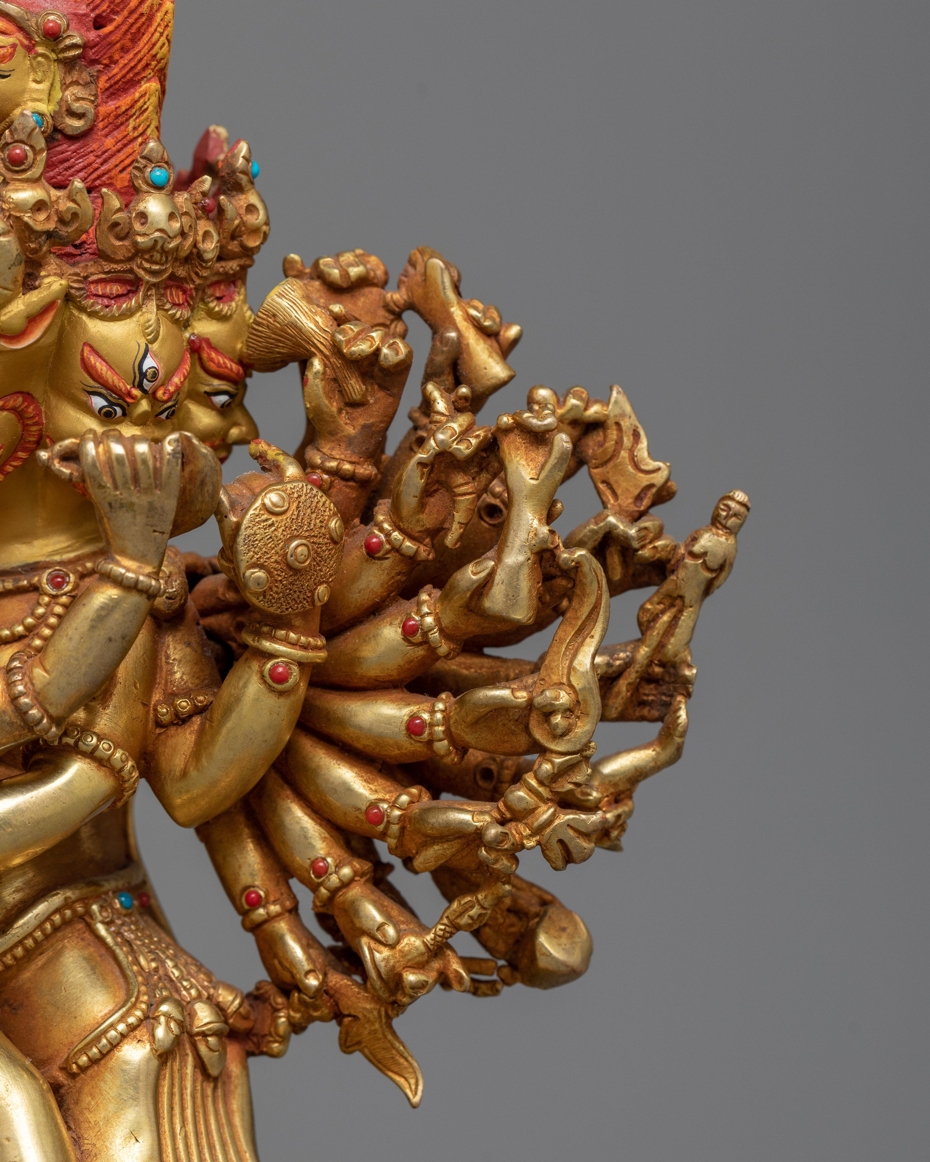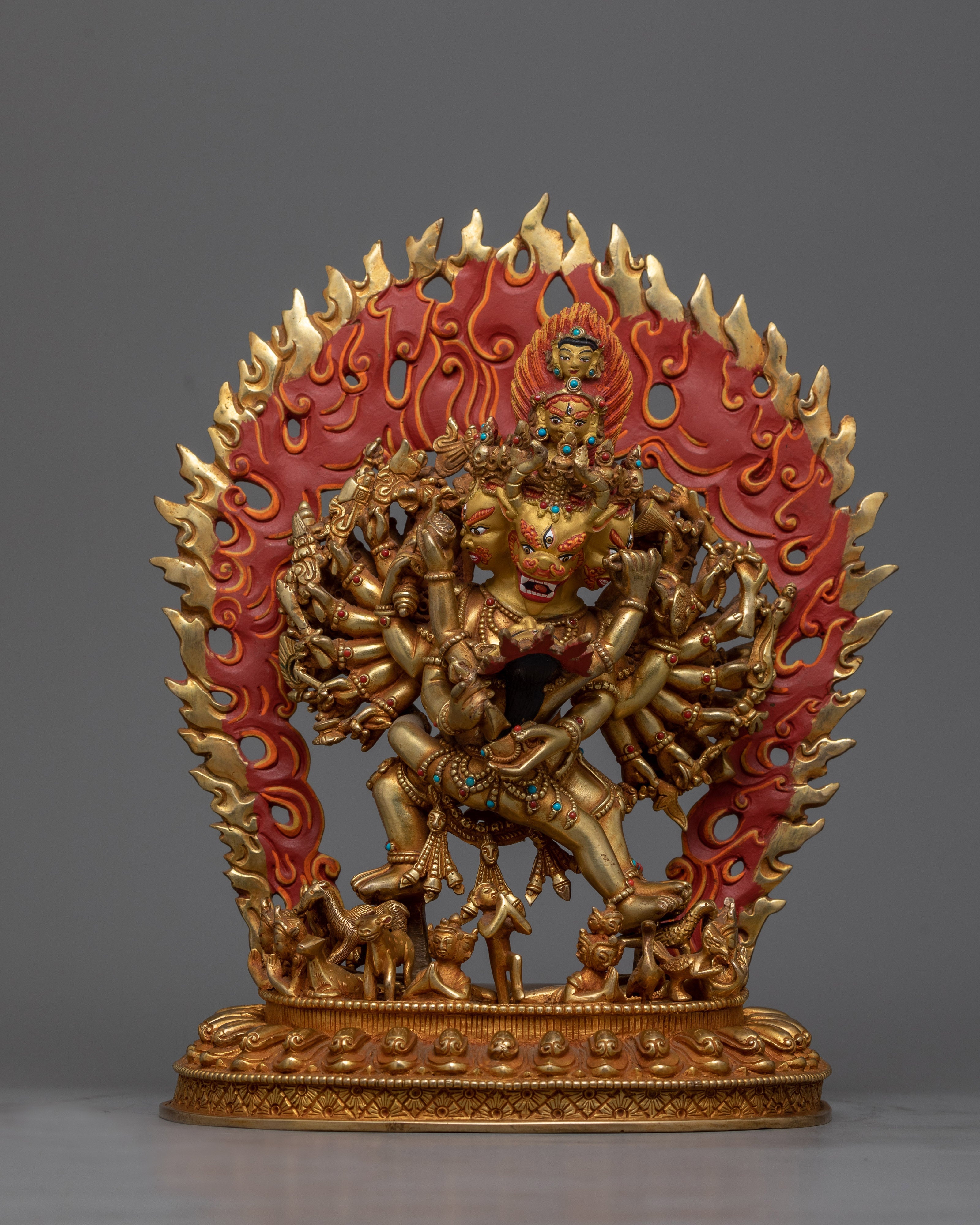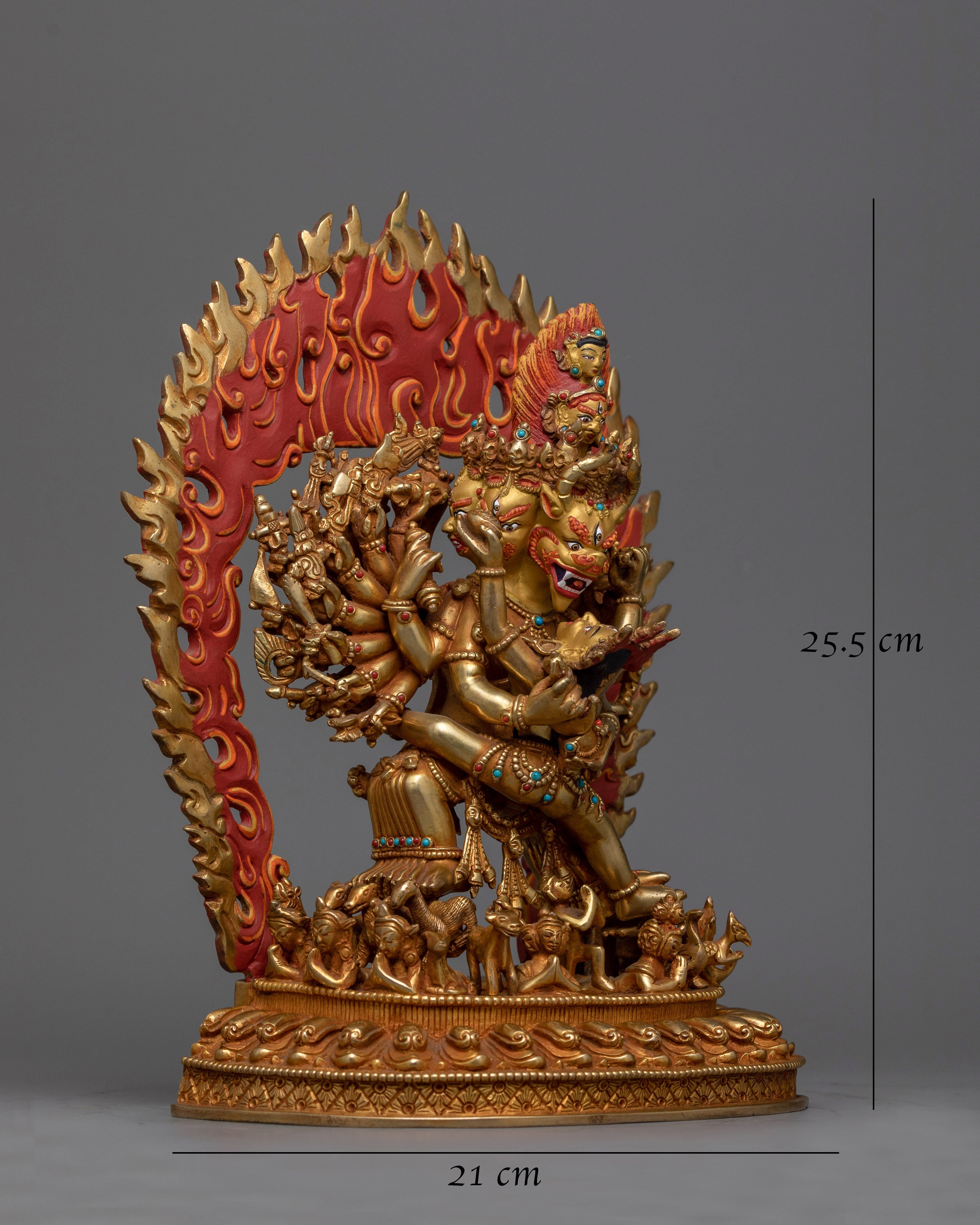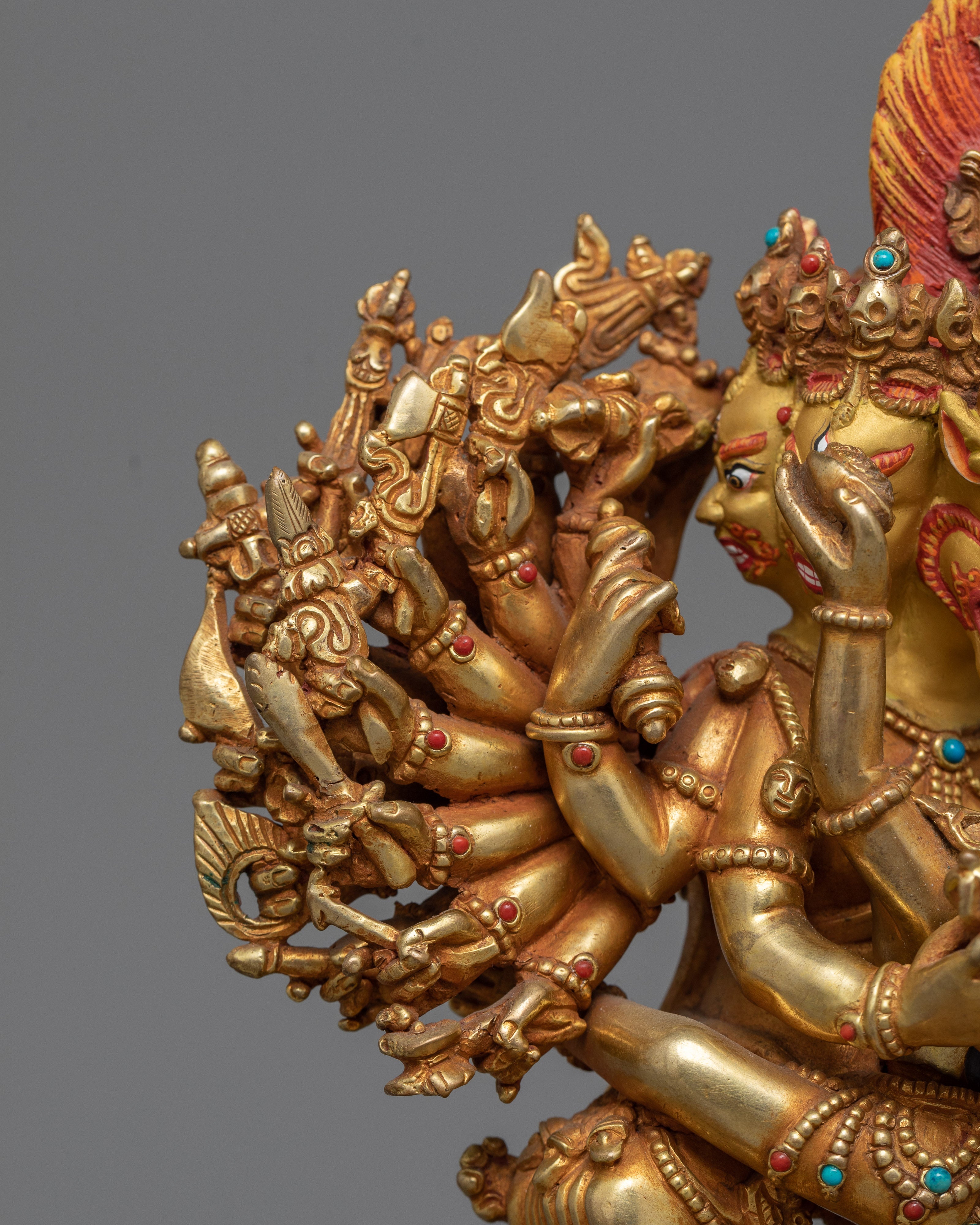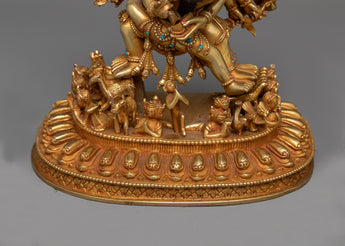Handcrafted Yamantaka Statue with Consort – 24K Gold Gilded and Vibrant Details
