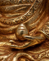 This magnificent set of 16 gold-gilded copper statues represents the Karmapa Lineage, a cornerstone of Tibetan Buddhism’s Karma Kagyu tradition. Handcrafted with exquisite detail, each statue symbolizes one of the historical Karmapas, from the 1st Karmapa, Dusum Khyenpa (1110–1193), to the 16th Karmapa, Rangjung Rigpe Dorje (1924–1981). Adorned with gilded crowns and traditional robes, the statues reflect these revered teachers' spiritual authority and timeless wisdom.