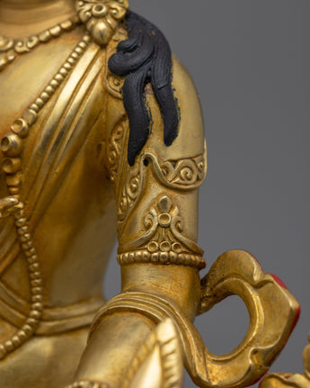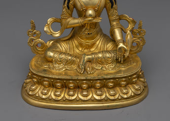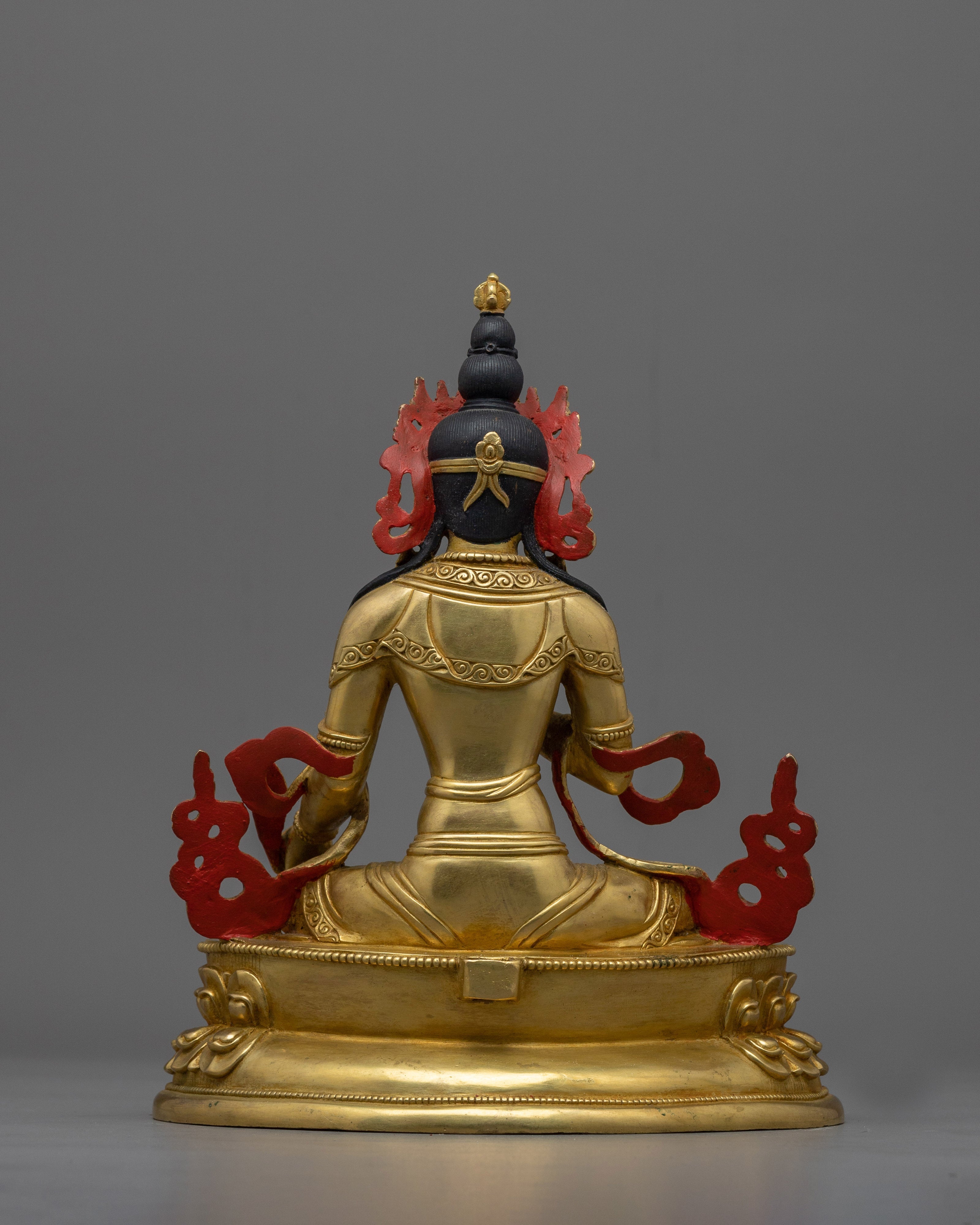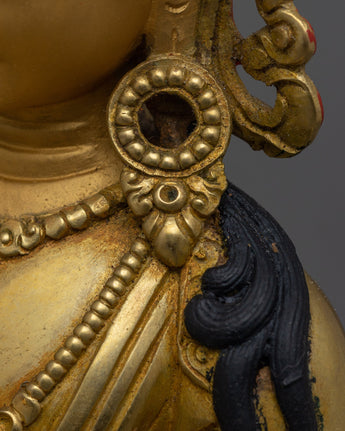 The Kshitigarbha Earthly Deity statue can help you embrace compassion and knowledge. This sculpture represents the nurturing attributes of Kshitigarbha Bodhisattva and was created with great attention to detail. It is 10.6 inches tall and has a base that is 7.9 inches in diameter. It exudes calm and holy energy. This monument, which is adorned with elaborate acrylic paintings and 24K gold gilding, acts as a constant reminder of Kshitigarbha's infinite wisdom and compassion. Start your spiritual journey with this statue of Kshitigarbha. The everlasting lessons of Kshitigarbha Bodhisattva are reflected in every aspect of this sculpture, encouraging you to develop compassion and wisdom in your own life.