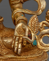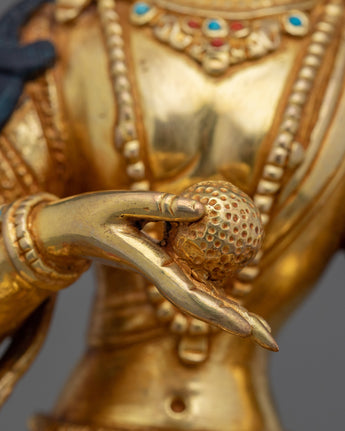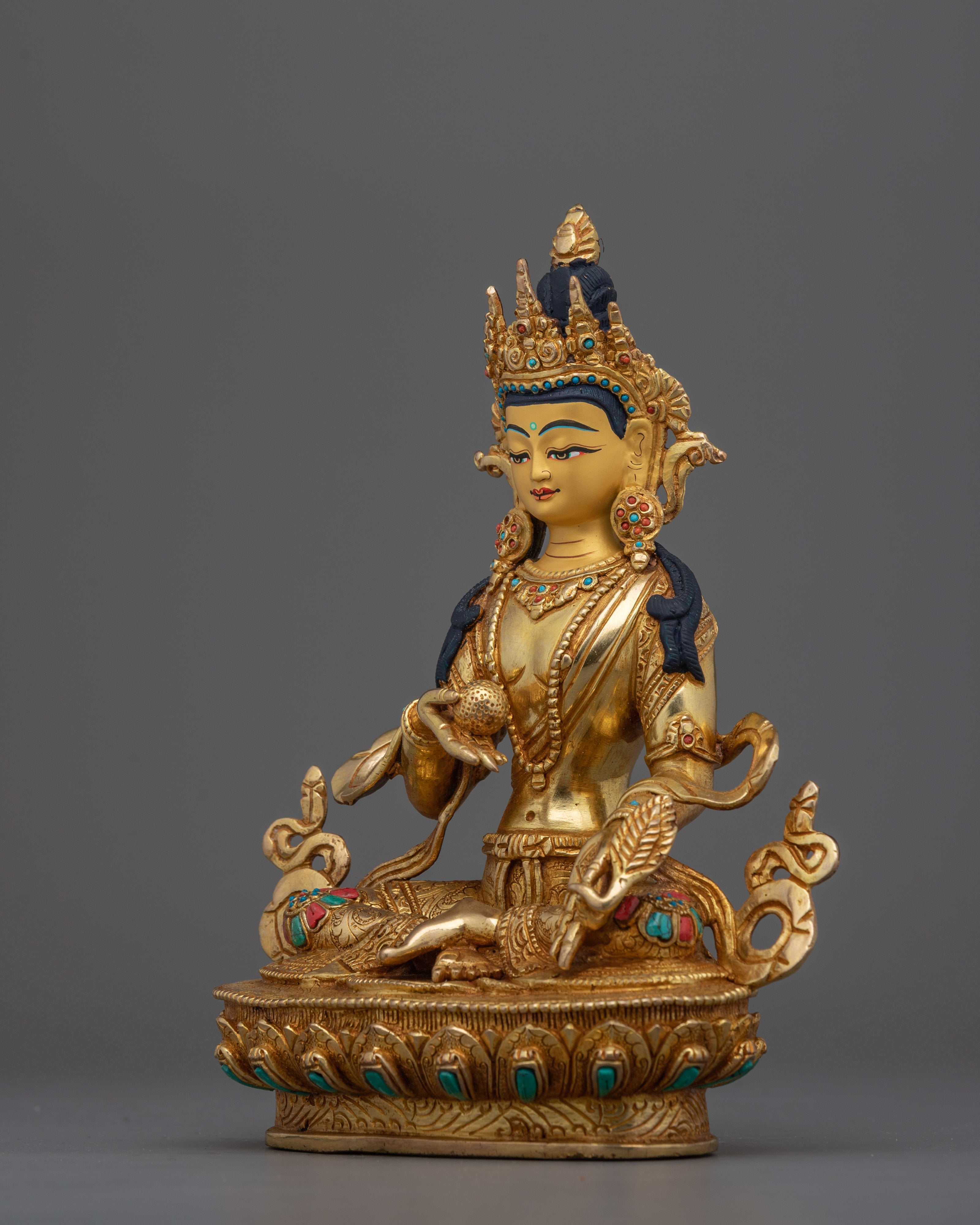 He is depicted seated on a lotus seat, decorated with carved jewels over the body ornaments and crown. He has a pearl in his right hand that has unfathomable magical qualities. Additionally, the Varada mudra, which means "gift offering," is depicted on his left hand. You can use this figurine for different Buddhist Rituals and meditational practices. This purely hand carved statue of the Kshitigarbha Bodhisattva will be the perfect gift for a practitioner like you from Nepal.
