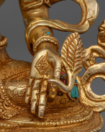 Material: 24K Gold Gilded, Gold & Acrylic Paintings, Hand Carved Gemstone, Copper Body