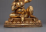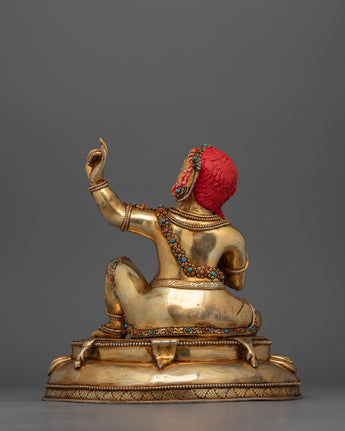 The Tutop Wangchuk Virupa Figurine is a powerful representation of the revered mahasiddha, known for his profound understanding and mastery of tantric rituals. This statue, expertly manufactured in Patan, Nepal, is made of copper and gilded with 24K gold. It is embellished with beautiful gold and acrylic paints. This artwork, measuring 9.4"/24cm in height with a 9.4"/24cm base and weighs 3.51 kg, displays creativity and spiritual significance, making it an excellent addition to your sacred space or altar.