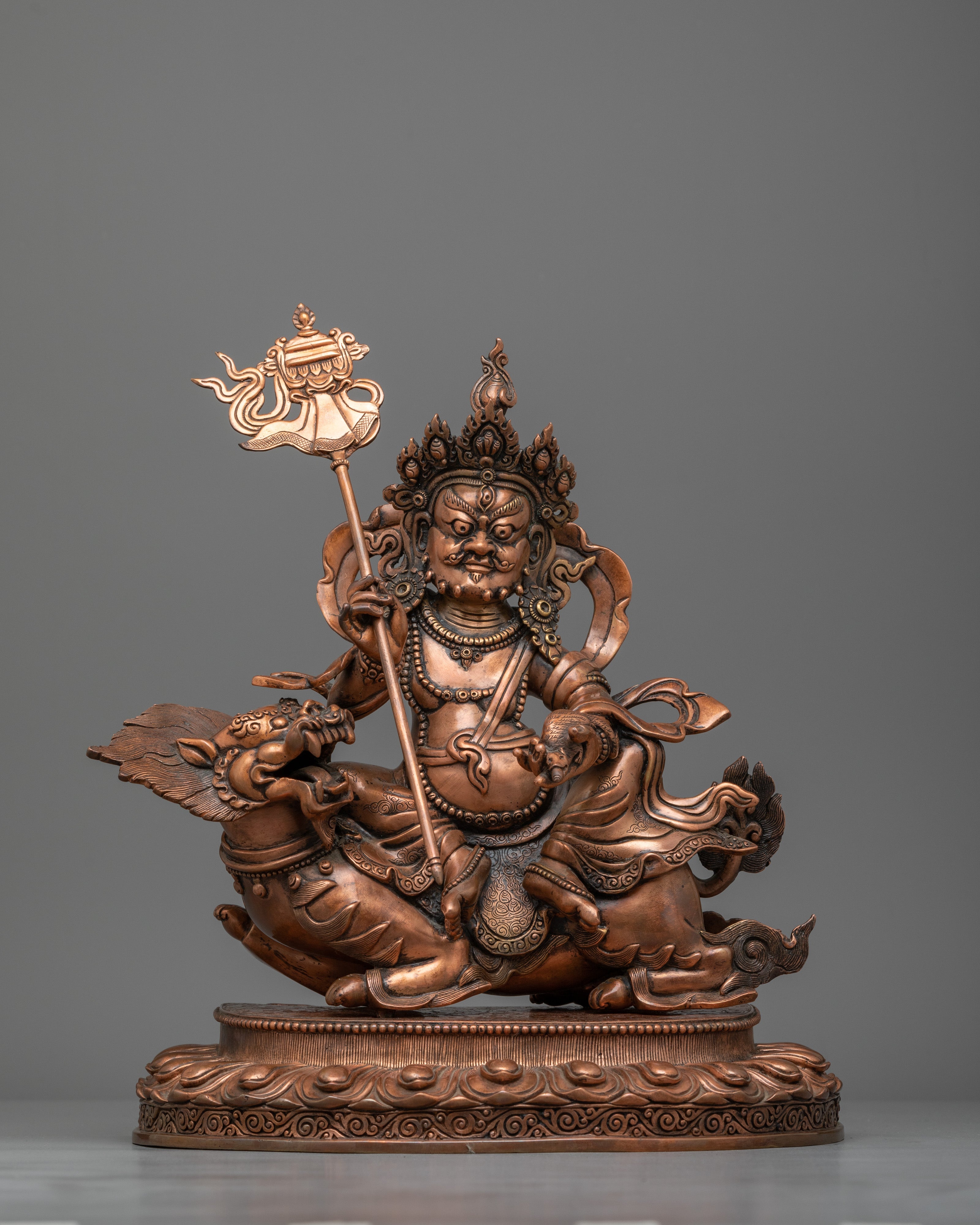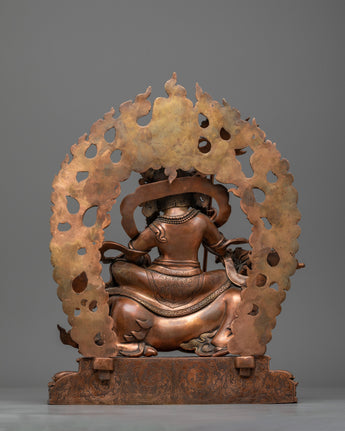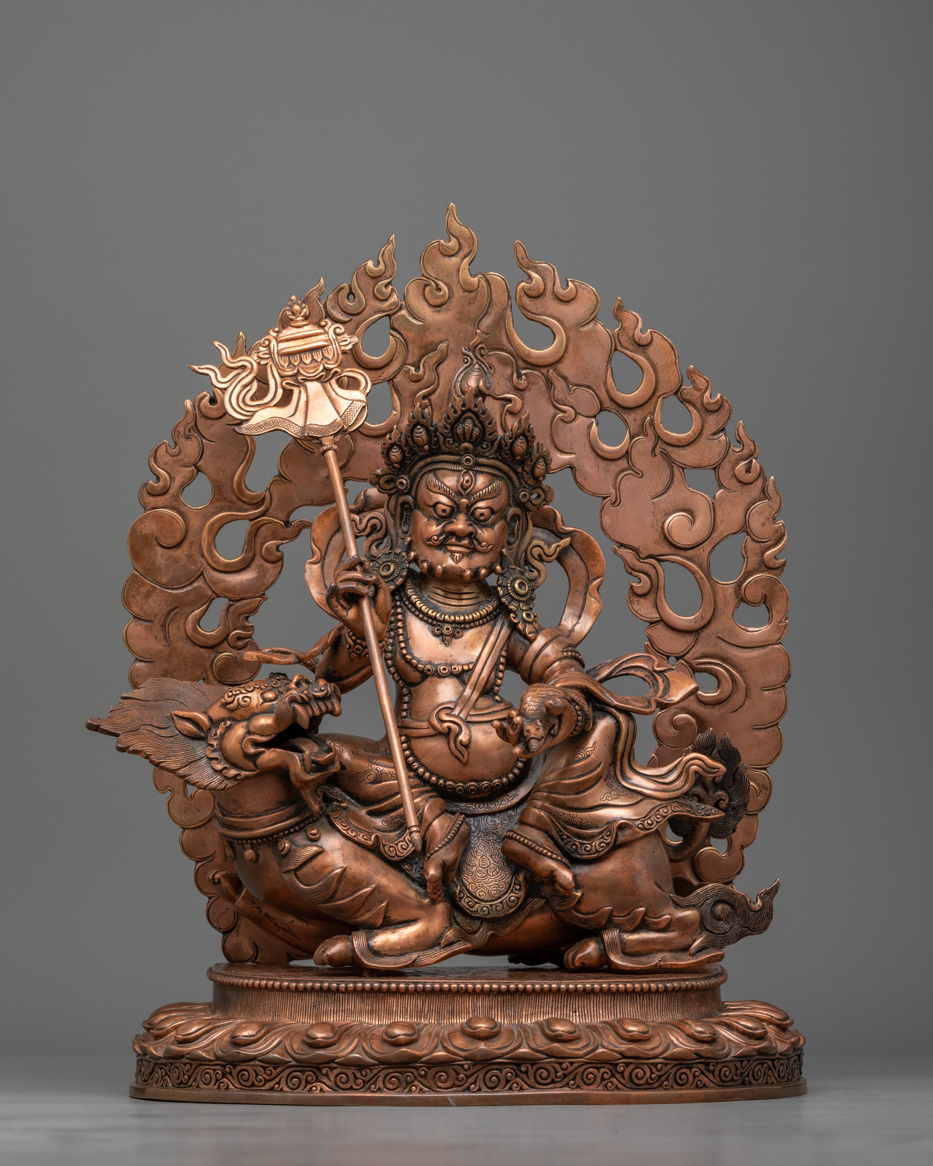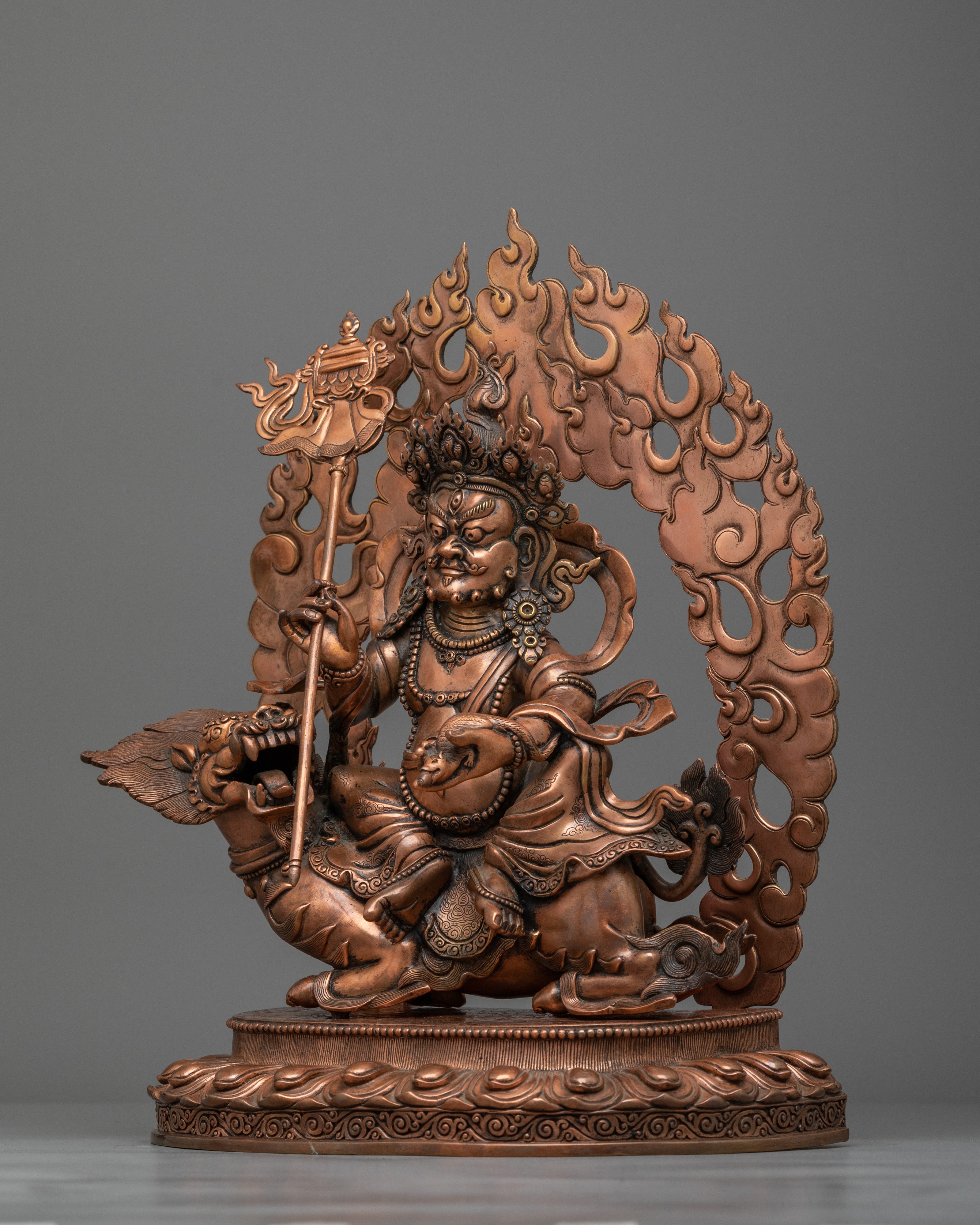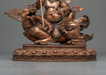 This figure, made of high-quality oxidized copper, commands attention. The careful detail emphasizes every element, from Namtoshe's serious look to the beautiful designs on his apparel and other items. This monument, weighing 5.56 kg, is both a visual marvel and a powerful spiritual anchor for any sacred location, Imagine Namtoshe's strong presence in your home, protecting and drawing money. This statue honors Namtoshe's function as a guardian of prosperity, adding dignity to your meditation area or altar.