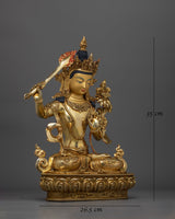 Manjushri Gold Gilded 35cm Statue | Handcrafted Artwork of Wisdom