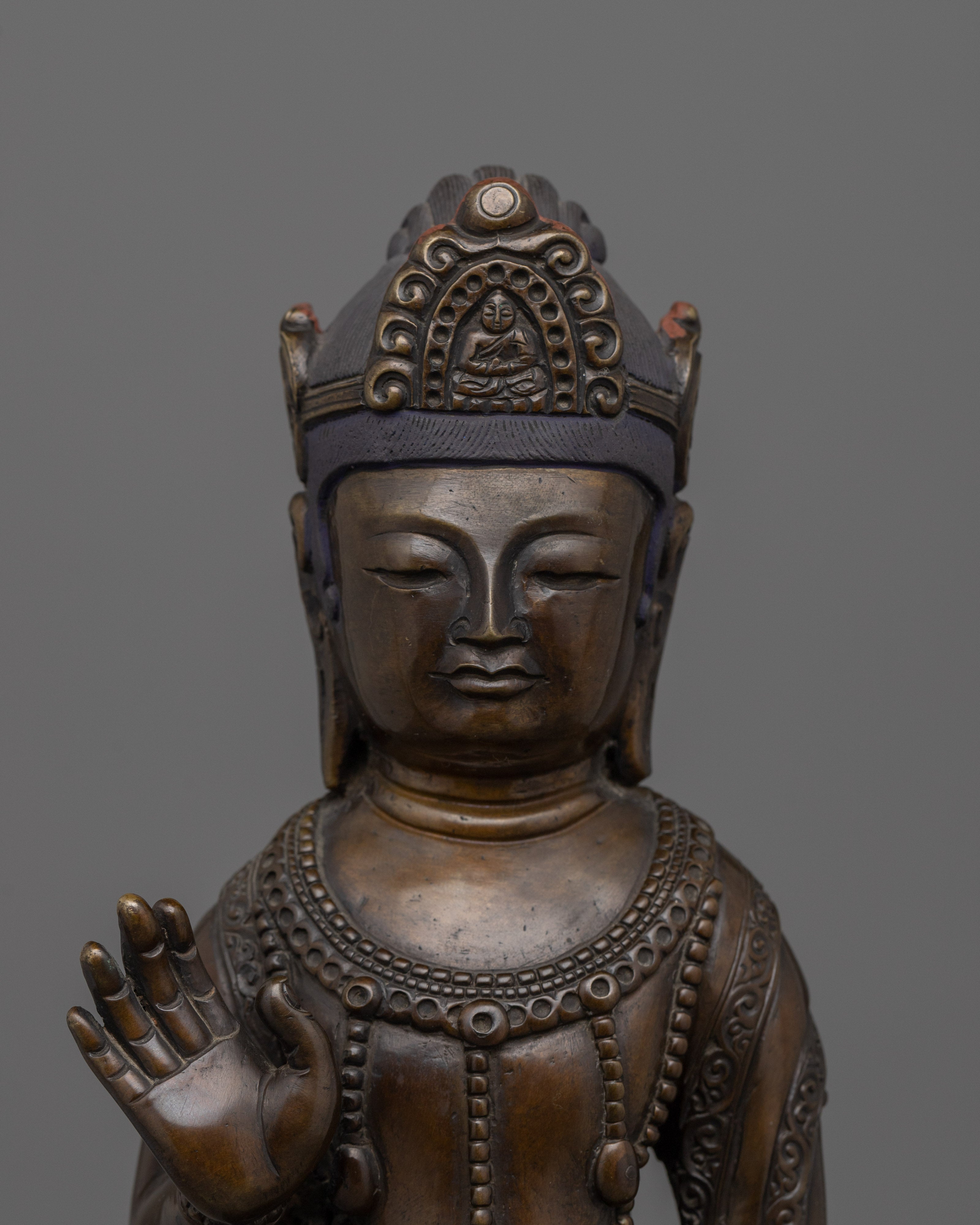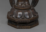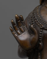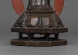 Hand-Carved Oxidized Bodhisattva Statue with Copper Body for Meditation and Spiritual Decor