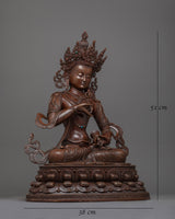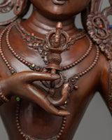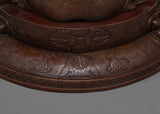 Discover the transformational power of our Oxidized Vajrasattva Figure, which was lovingly created by talented artisans. This statue, which has a base diameter of 15 inches and a height of 20.1 inches, is made of oxidized copper, which gives it a somber and unique appearance. Vajrasattva is portrayed with great detail and a profound, meditative presence. He is adored in Vajrayana Buddhism for his association with purification and the cleaning of negative karma.