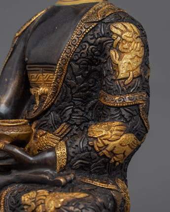 Amitabha Buddha Sacred Statue, which was made by talented craftspeople in Patan, Nepal, is a real example of traditional craftsmanship. The copper body draws attention to the 24K gold gilding and the acrylic and gold paintings that give the deity a bright radiance. From the elaborate lotus seat to Amitabha's exquisite hand movements, every little detail has been carefully crafted to evoke spiritual meaning.
