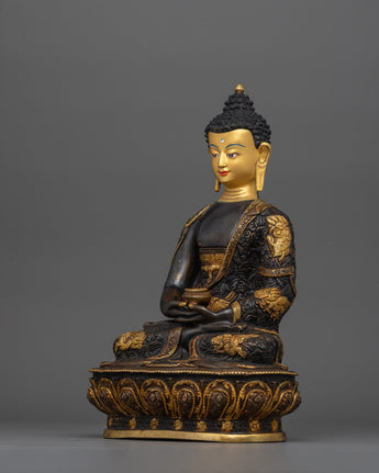 The Western Pure Land Handcrafted Amitabha Buddha Sculpture Buddhist Art with Oxidized Copper