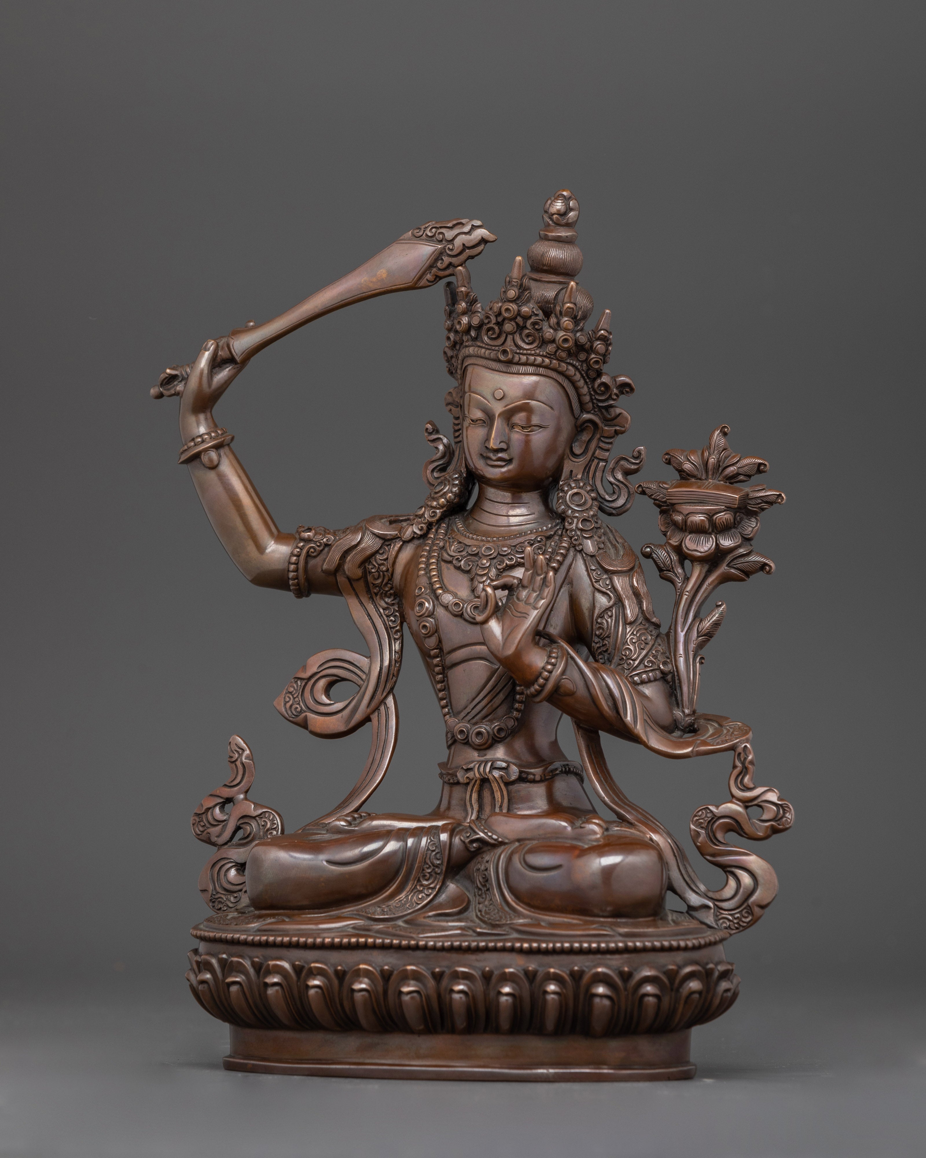 Sacred Manjushri Figurine | Oxidized Copper Buddhist Statue