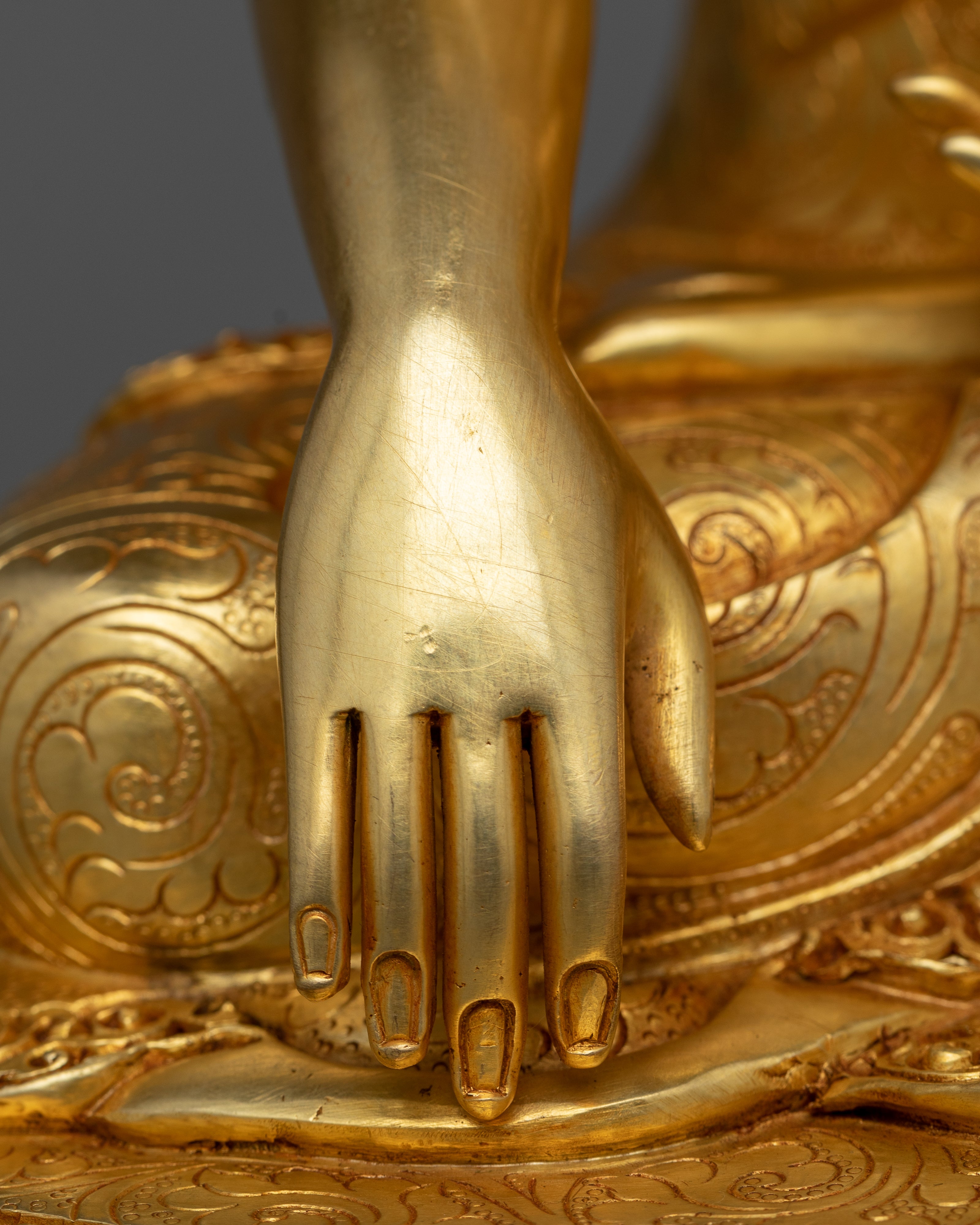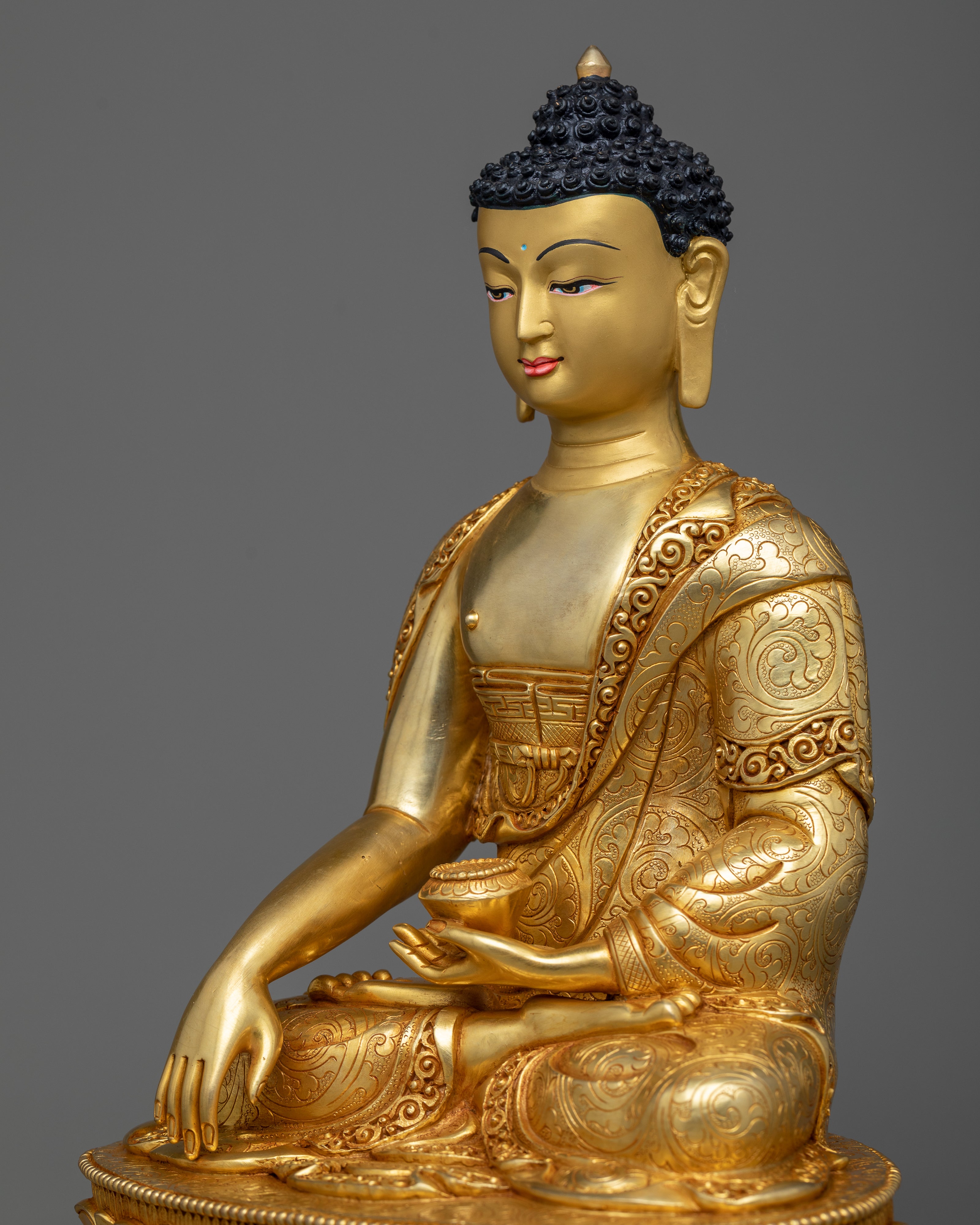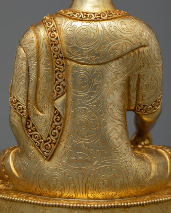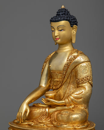 Shakyamuni Buddha Statue Made by Carving | Bright 24k Gold Electro Plated