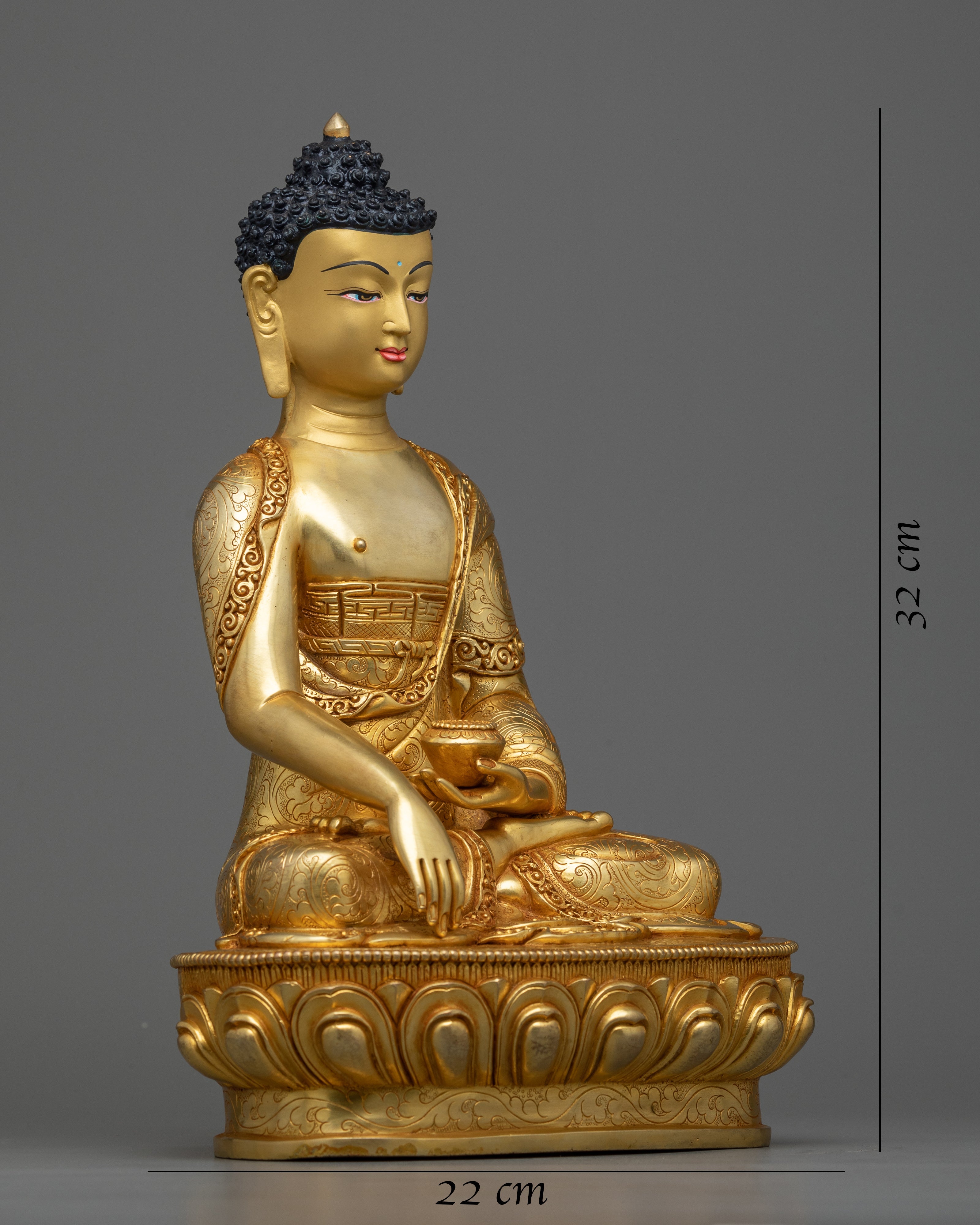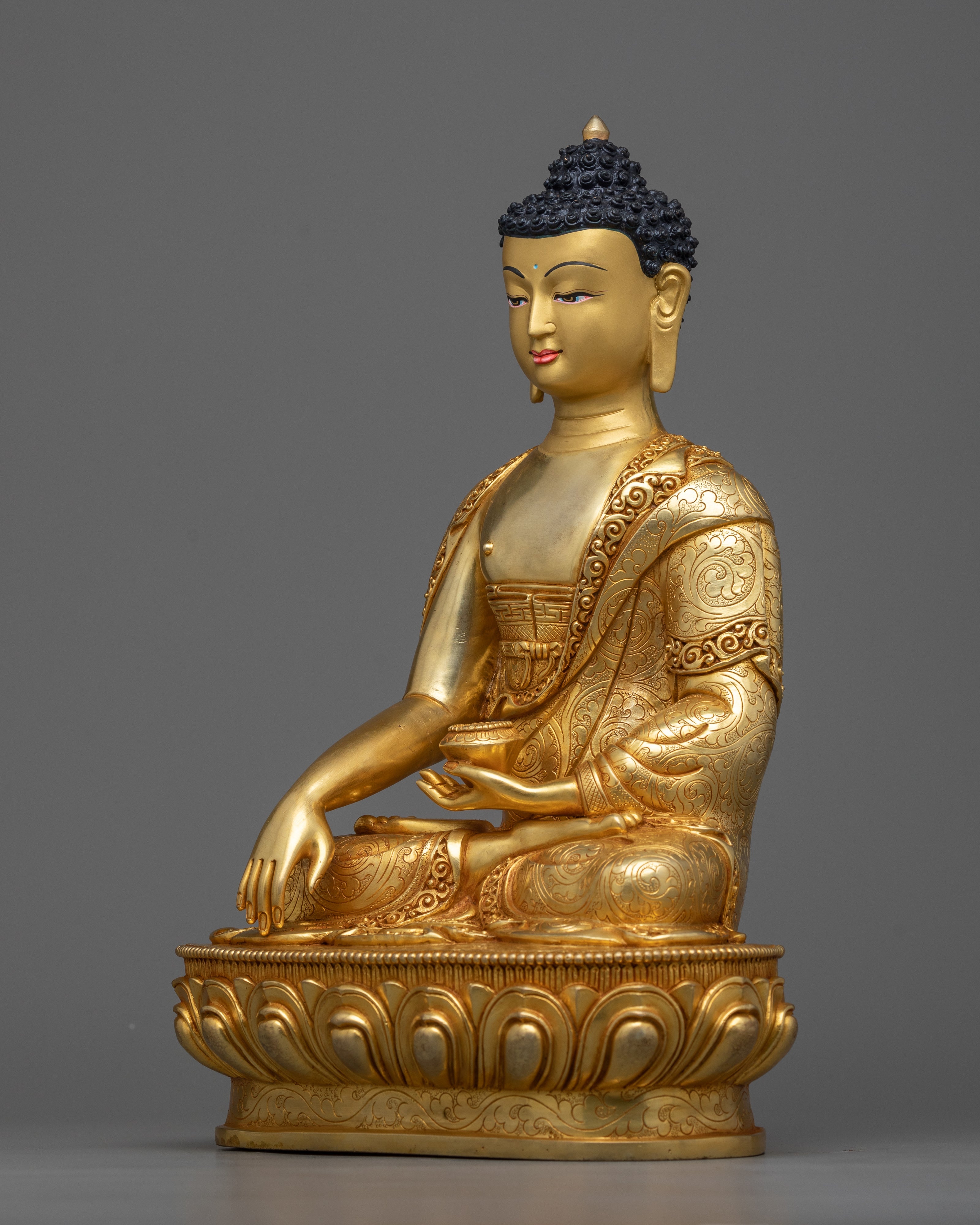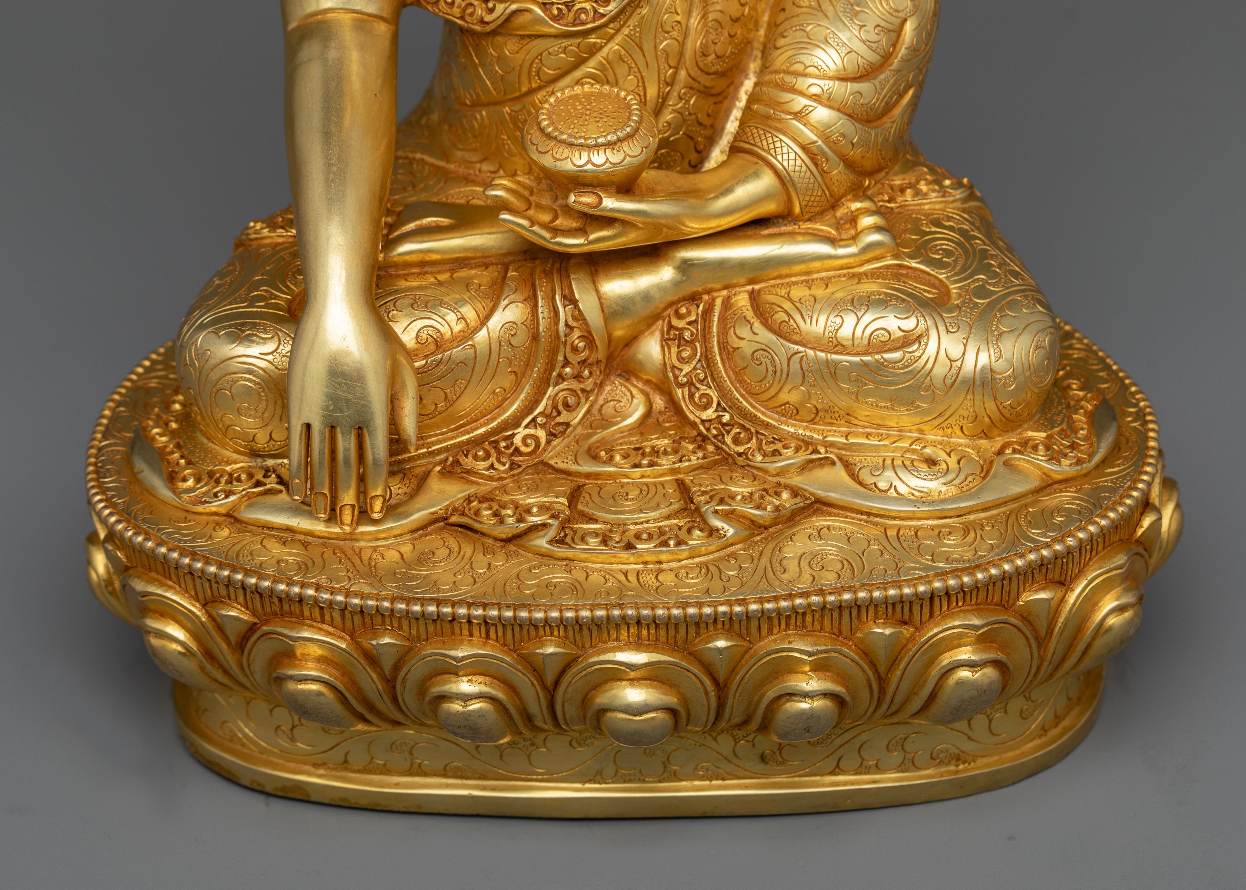 Shakyamuni Buddha Statue Made by Carving | Bright 24k Gold Electro Plated