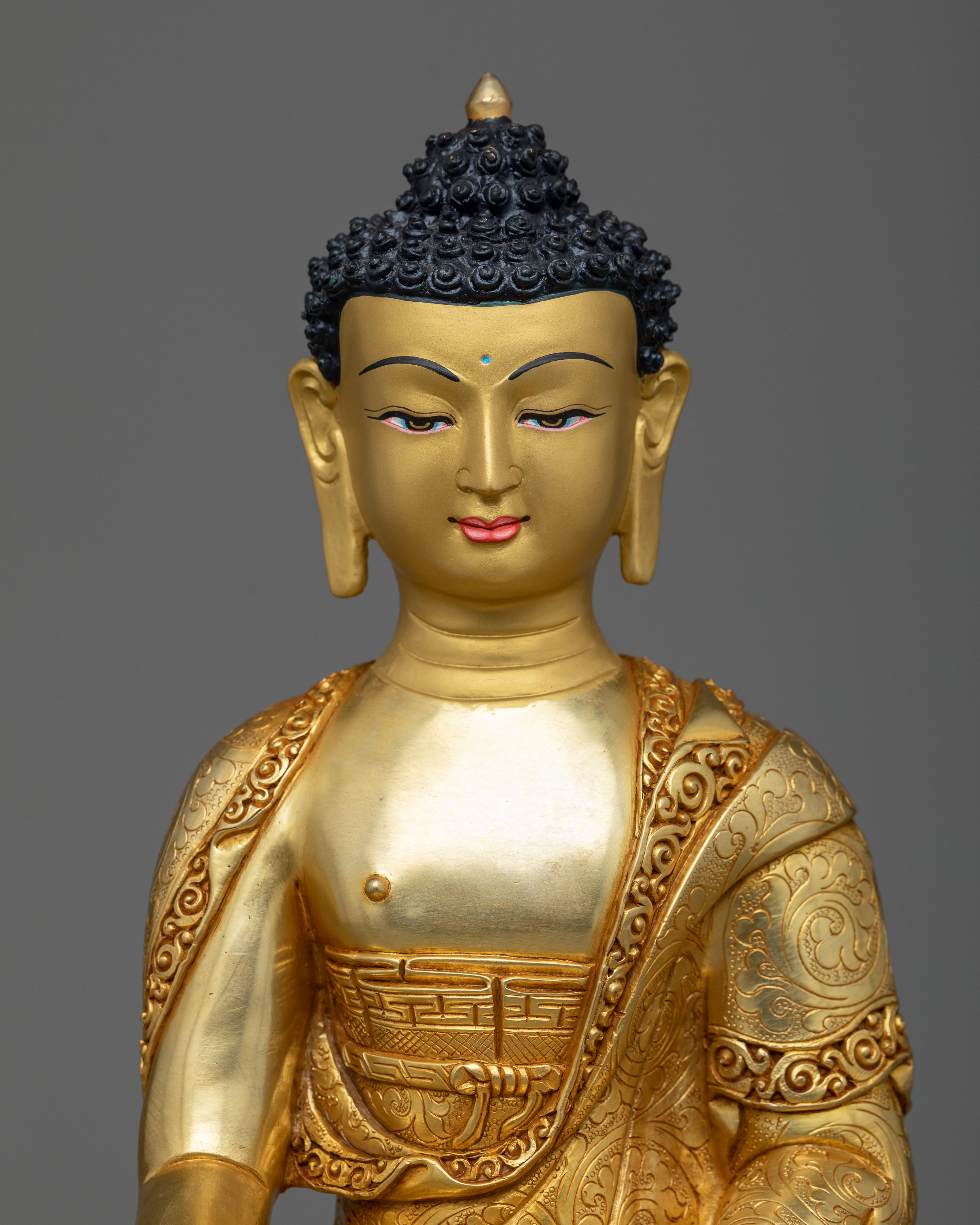 Beyond its aesthetic appeal, this statue serves as a conduit for the teachings of Shakyamuni Buddha, advocating peace, awareness, and the noble path to enlightenment.